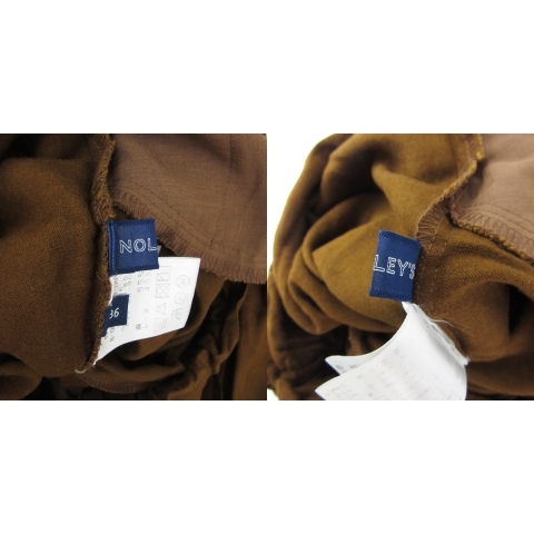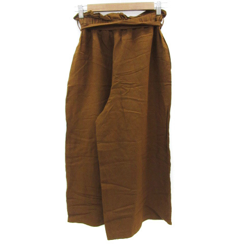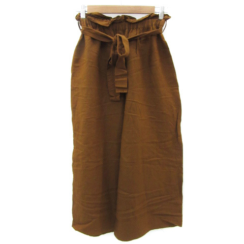 ノーリーズ Nolley's ワイドパンツ アンクル丈 リボン 麻 リネン 36 S ブラウン 茶 /YM1 レディース
