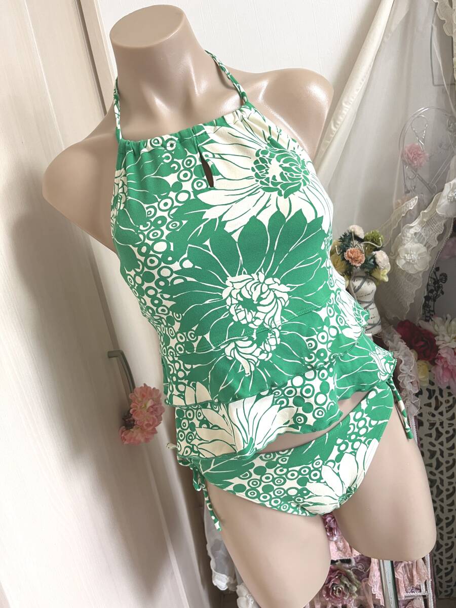 ●レディース水着9M●ニッキー【ICB】タンキニ水着*ホルターネック水着キャミ&ビキニパンツ:グリーン