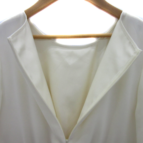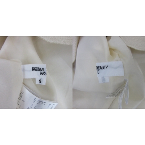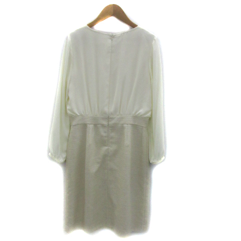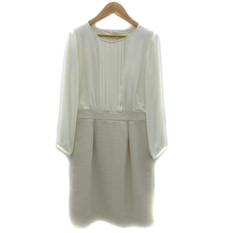 ナチュラルビューティーベーシック NATURAL BEAUTY BASIC ワンピース ひざ丈 長袖 ラウンドネック 切替 S オフホワイト レディース