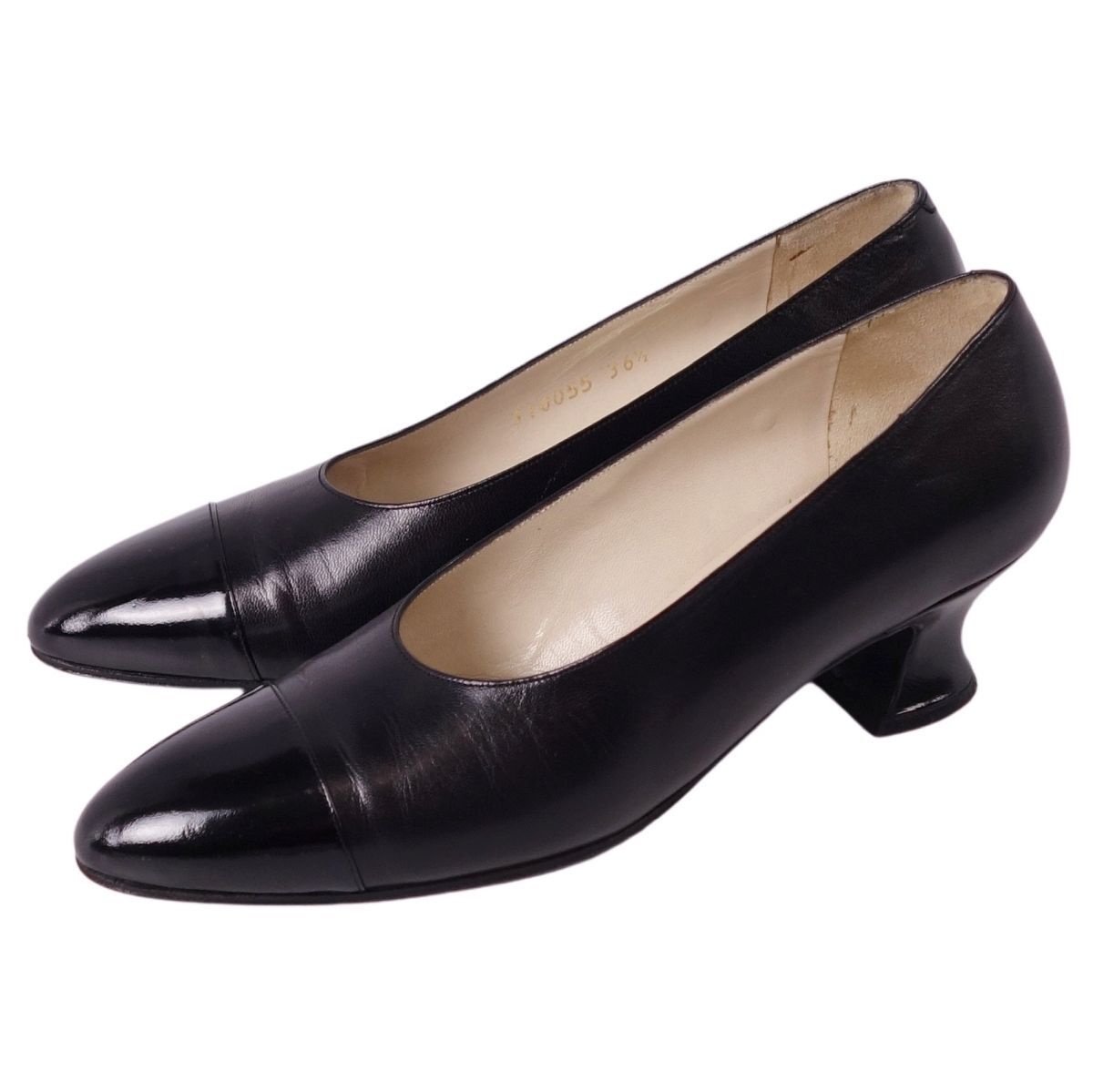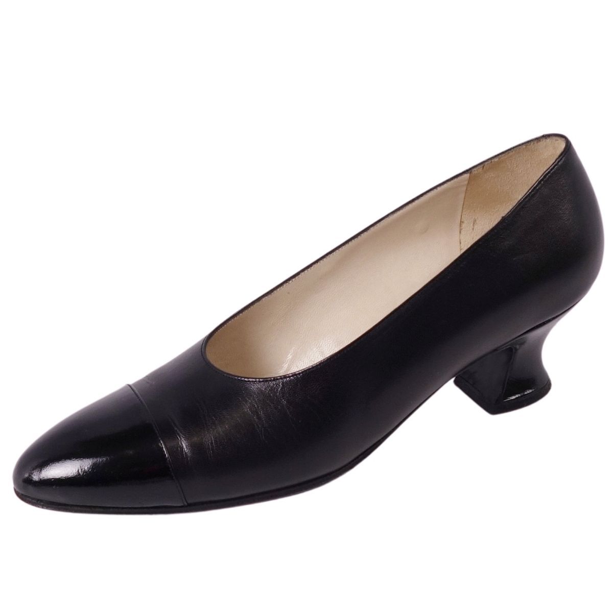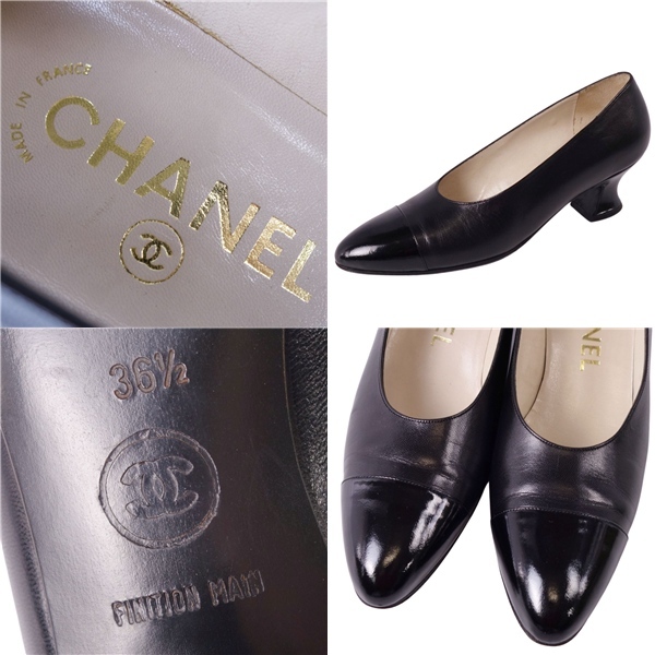 | 美品 Vintage シャネル CHANEL パンプス レザー ヒール シューズ 靴 レディース フランス製 36.5 ブラック |