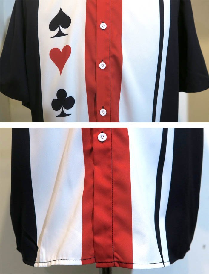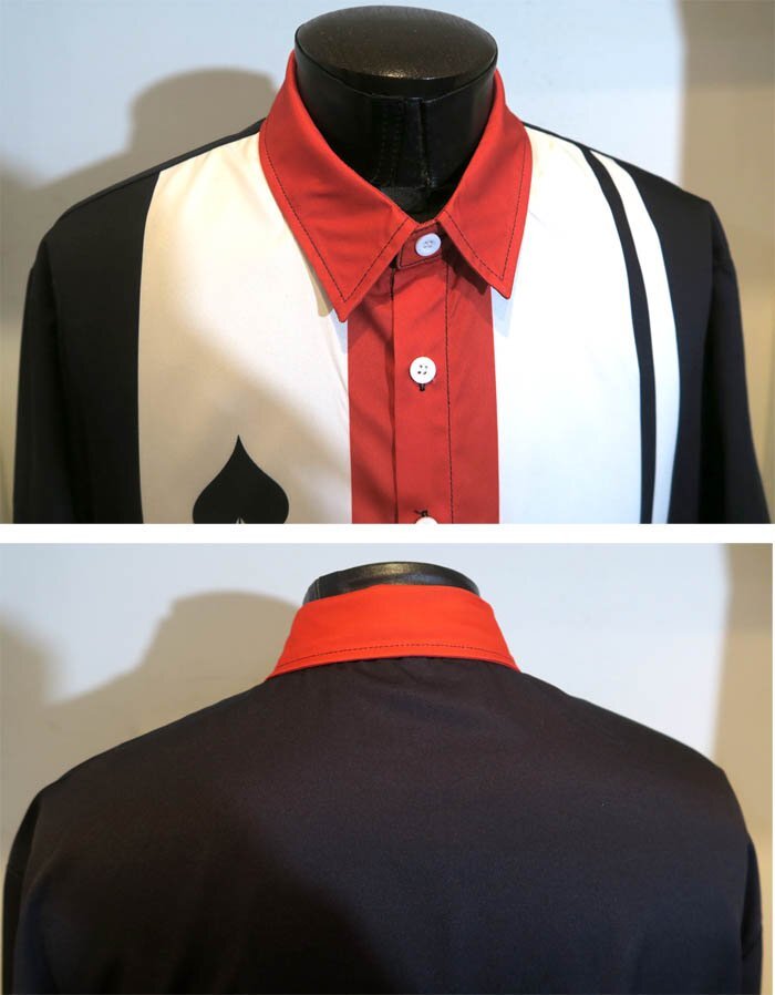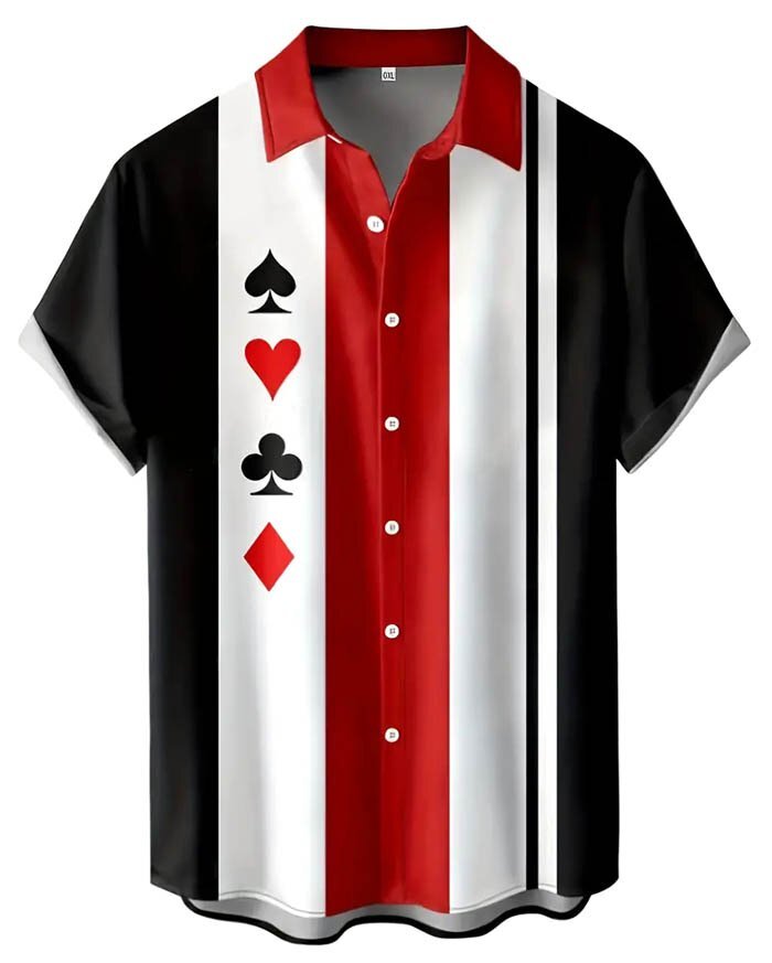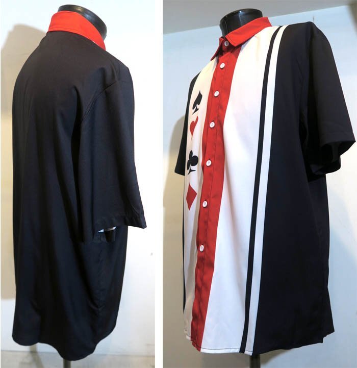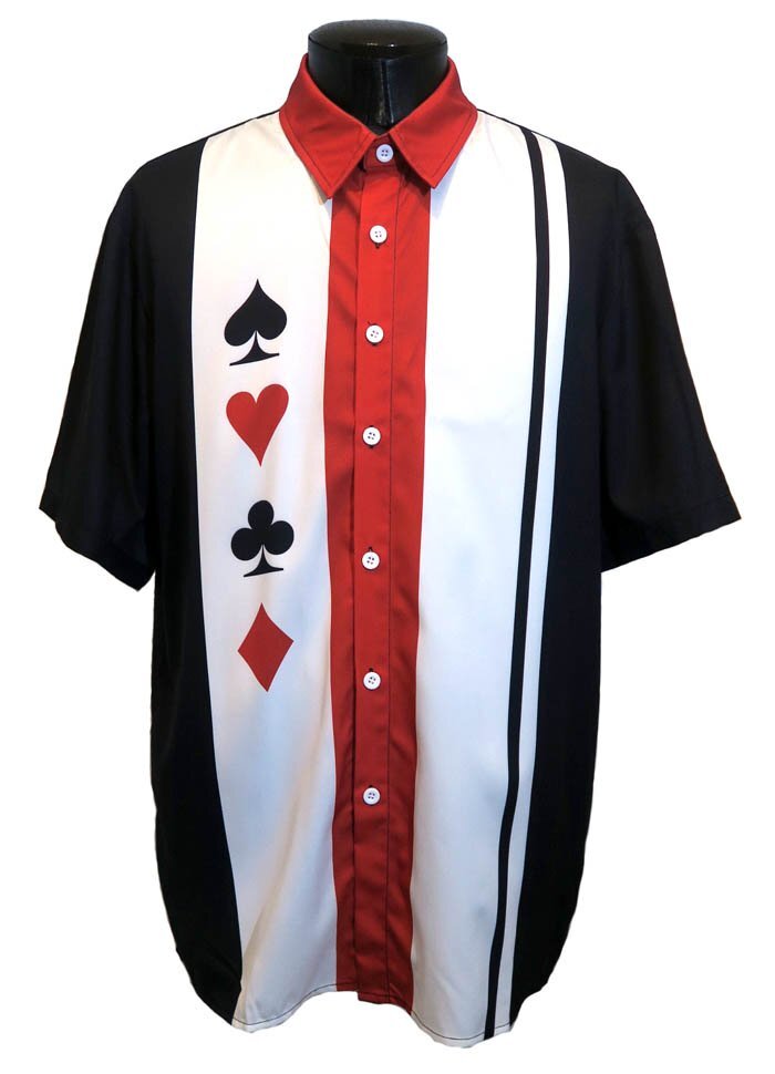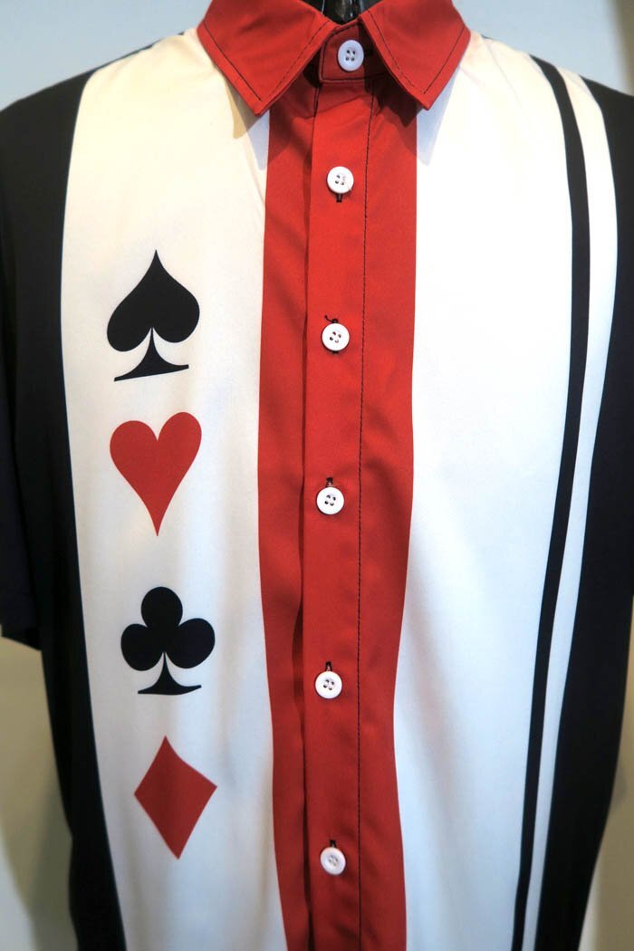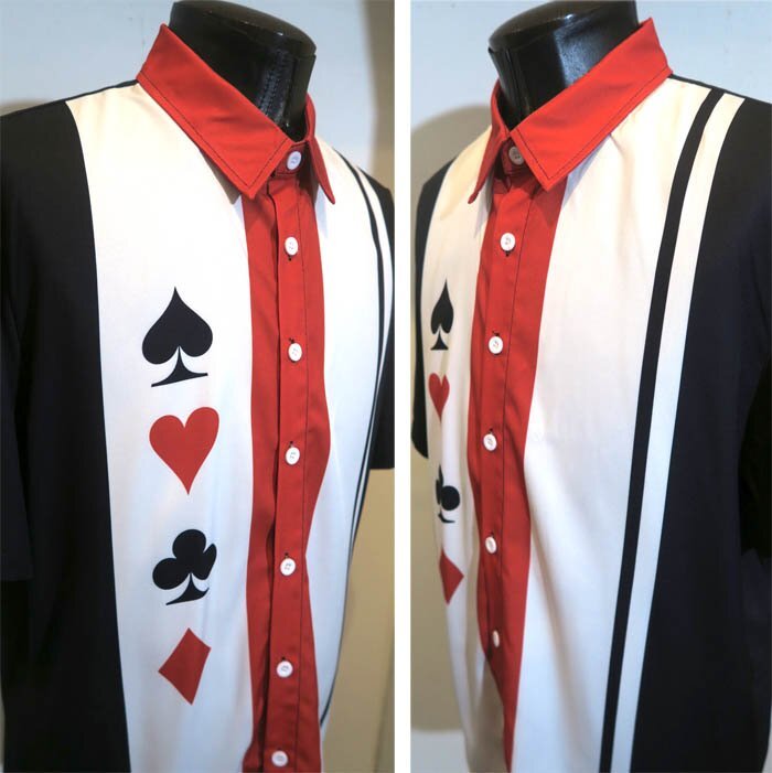 新品 Lサイズ トランプ デザイン シャツ 半袖 白 黒 赤 1354 904 メンズ 柄シャツ スペード ハート クローバー ダイヤ ロカビリー ロック