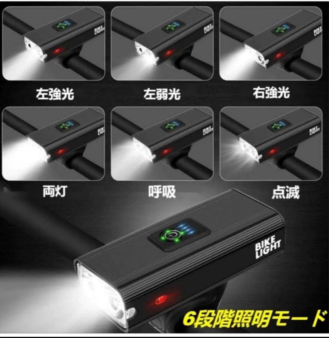 【1000LM高輝度&5200hAm大容量&6つの調光モード】超明るい1000ルーメンのCREE T6ランプビーズを二つ搭載しているので、 夜間運転中の視認性を高めることと、周囲のドライバーや歩行者に自転車の存在を知らせることに役に立つ自転車ライトです。 5200mAh電池を内蔵、完全充電1回だけで、18h~40h使うことができるロードバイク ライト です。 たまたま充電すれば十分です。左強光、左弱光、右強光、両灯、呼吸、点滅6つの調光モードを配置しています。 道路状況と、無駄な電池の消費を抑えるため、状況に合わせてモード切替できるライト です。