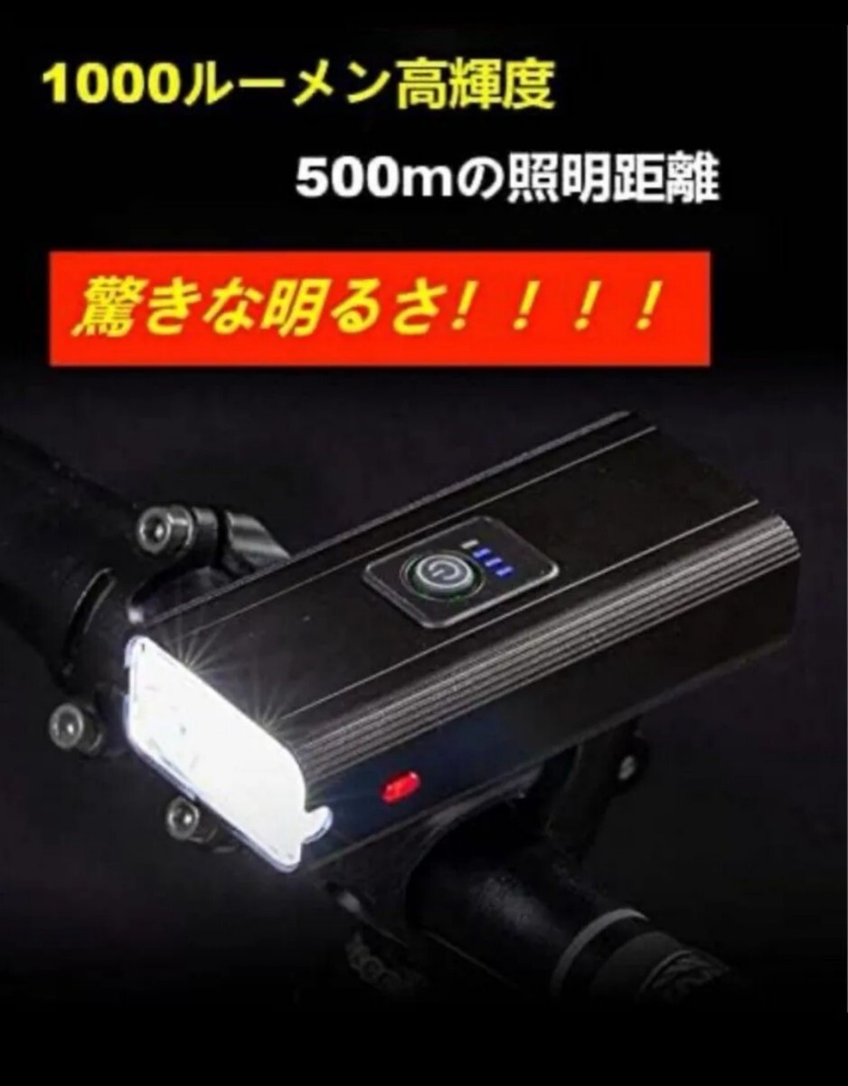 大容量5200mAh 自転車ライト USB充電式 1000ルーメン ト LED 自転車 IPX5防水 ヘッドライト 6つ調光モード 懐中電灯兼用 アルミ合金製 防振・防脱落設計