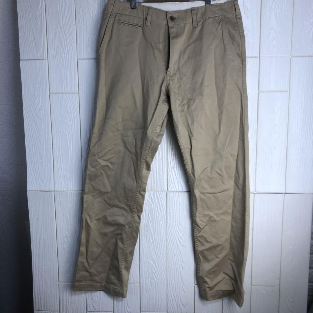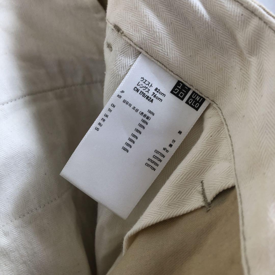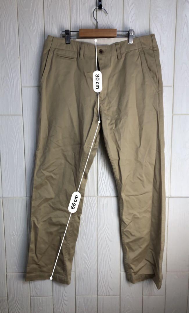 スリムフィットのベージュチノパン、ウエスト100cm、股下76cm。