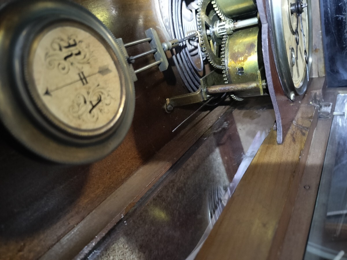 ぜんまいは左右とも巻けます、振り子も振れますが、すぐに止まります、時刻を知らす 音もなりますが 時計が動かないので ジャンク扱いでお願いします。