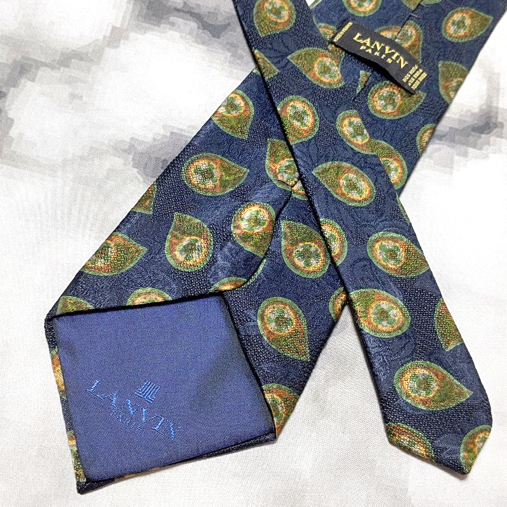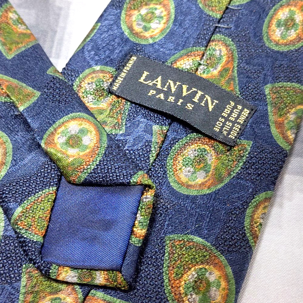 大人な色合いでオシャレ! ランバン LANVIN 良品 微光沢 ネクタイ フランス製 シルク100% パターン柄 濃紺系 ネイビー系 M-009063 | |