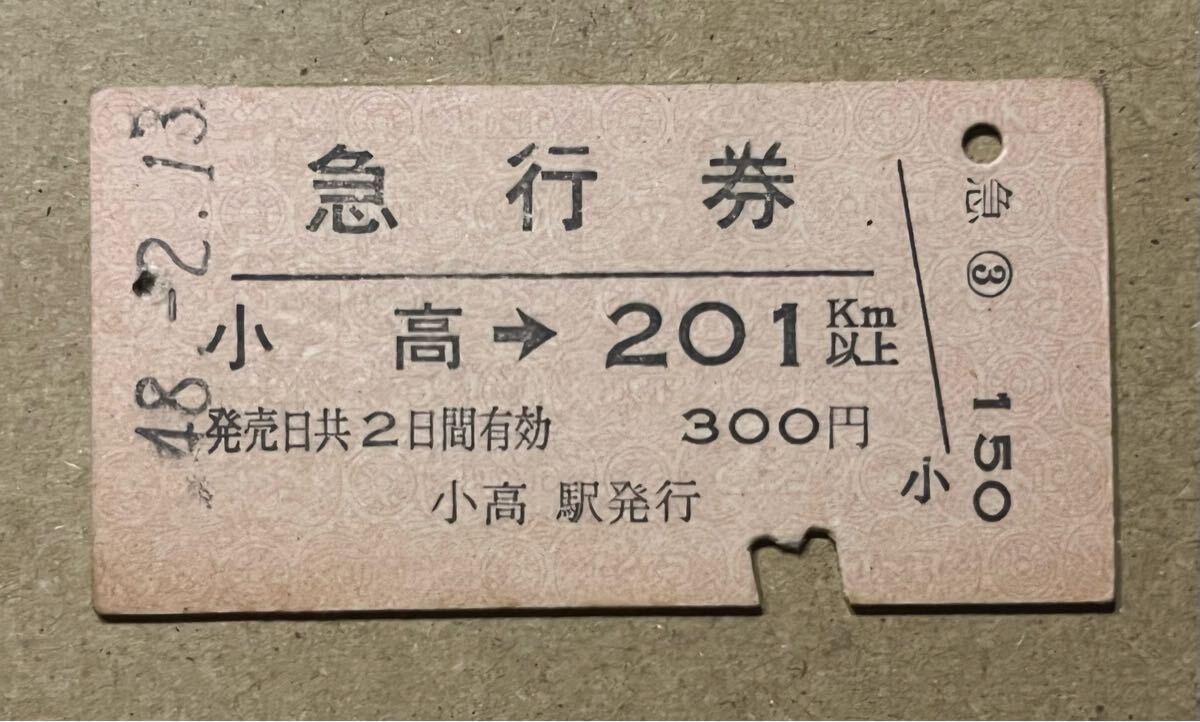 硬券 A型 国鉄 昭和48年 急行券 小高→201km以上 300円