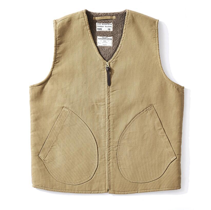 今季新作 USNワーク ボア裏地付きで防寒性も抜群 ヴィンテージ復刻デッキベスト◆メンズ アメカジ ジレ S~XXL カーキ