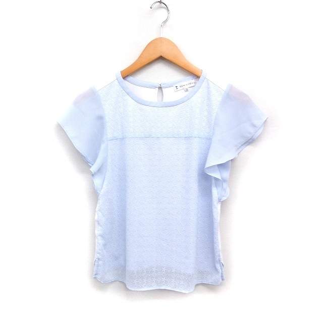 クミキョク 組曲 KUMIKYOKU シフォンスリーブ レース ブラウス 前後素材切替 S2 ライトブルー /FT7 レディース