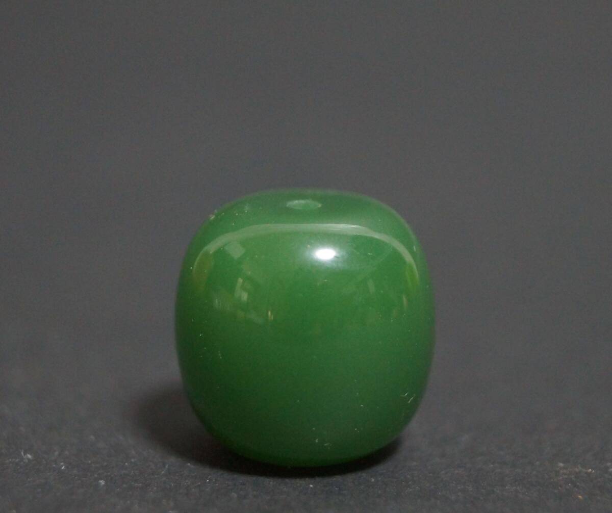 【寂】古代 和田玉(ホータン) 玉製 大玉太鼓形根付 緒締玉 提げ物 装飾品 径1.7cm☆時代物☆s70529