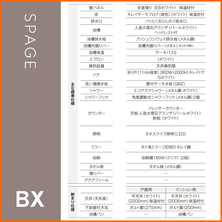 | 商品名 | リクシル システムバスルーム スパージュ 1416 BXタイプ 戸建用 Y |