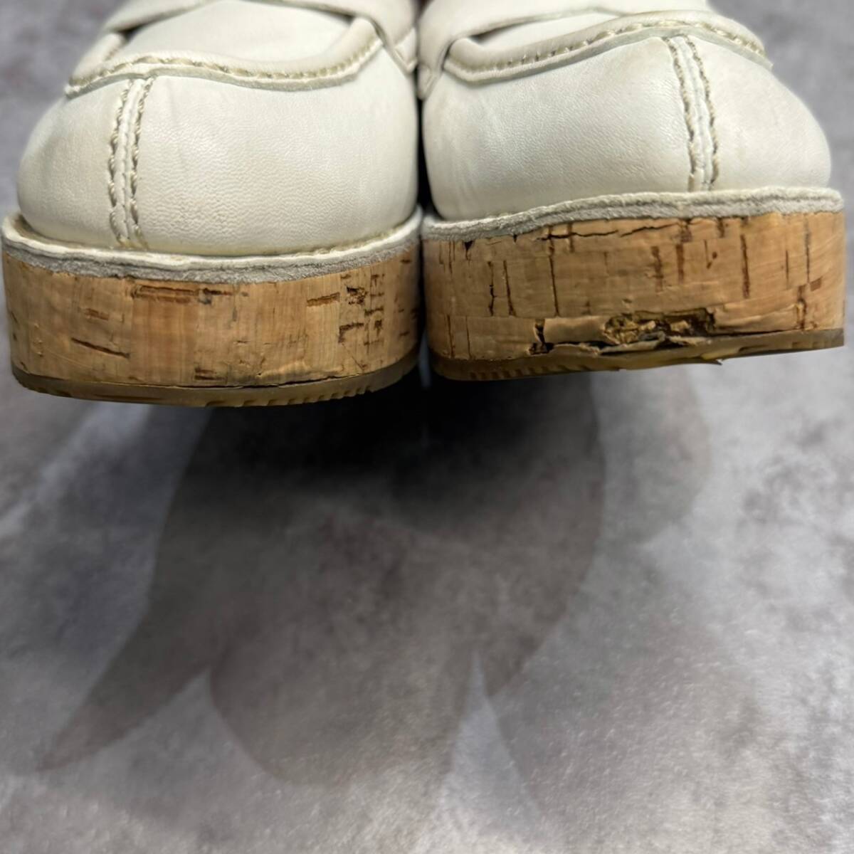 | 備考 | コルクのソールが珍しい一足。サイズが合う方はこの機会にぜひ。※左足つま先部分ダメージなど多少の使用感ございますので完璧を求めるかたや古着にご理解ないかたはご購入をお控えくださいませ。 |
