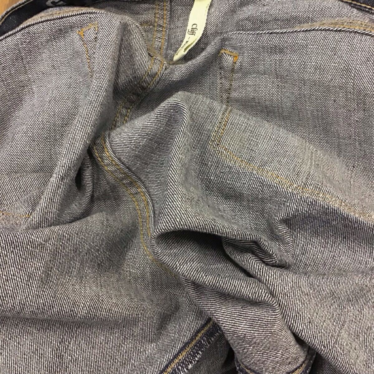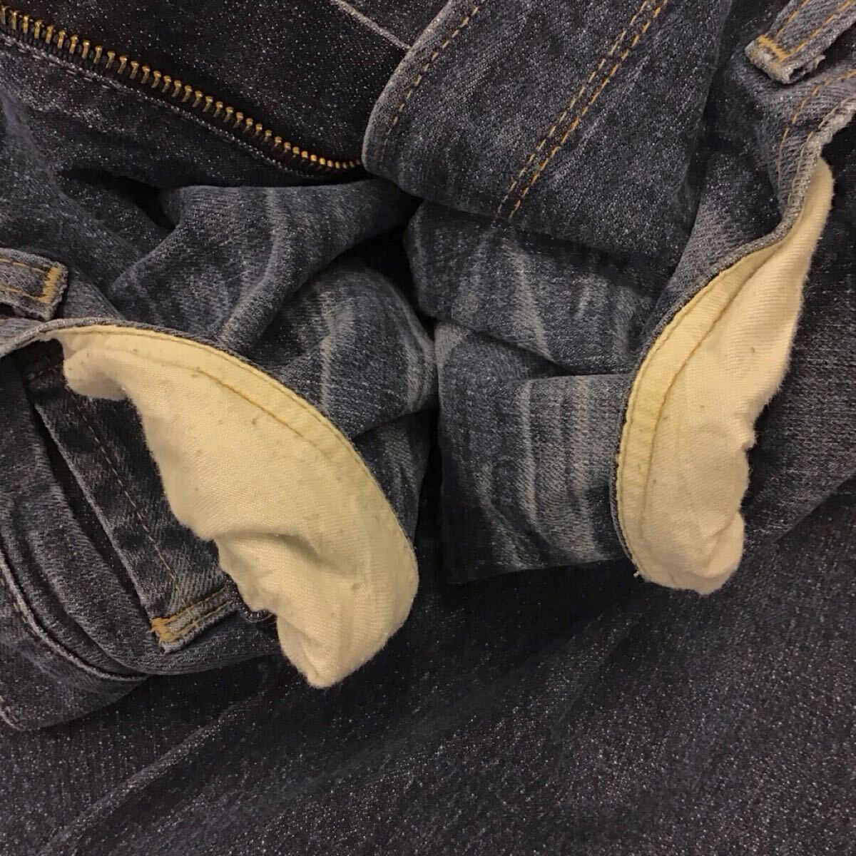 ●ウエスト→フロントボタンやジップは閉じ、ウエストの表中心と後ろ中心を合わせて机や床など平面な場所に置き、フラットに測れるよう生地を軽く手で押さえ、平置きしたパンツの左右端の最上部を計測、実寸した数値×2の表記をしてます。