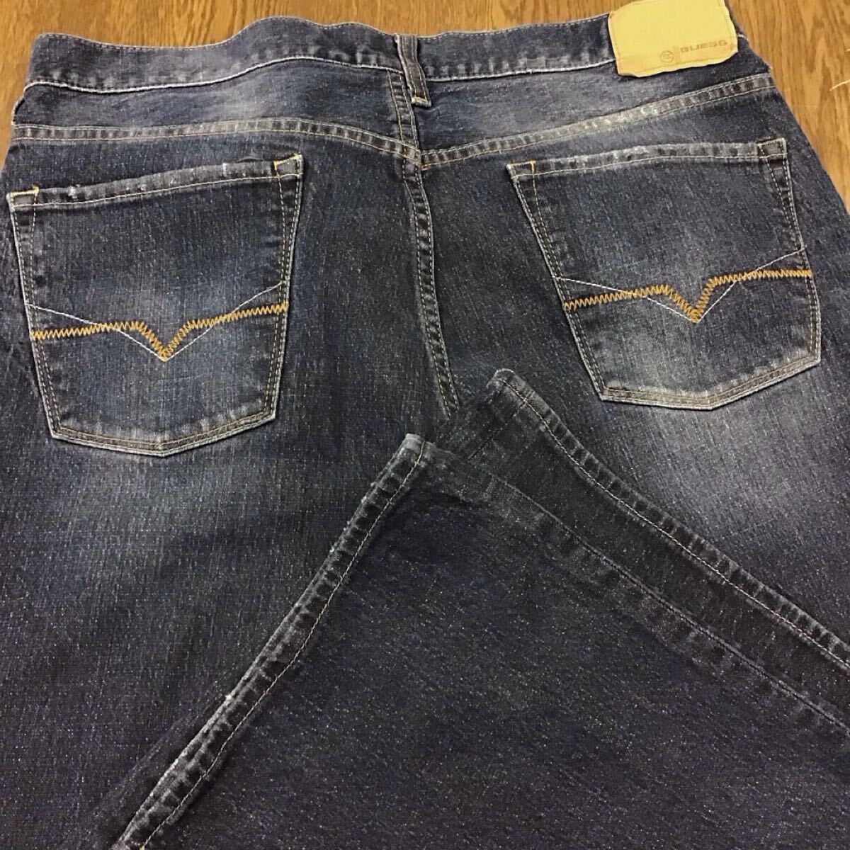 【GE125】GUESS JEANS W34 L32 色落ち加工 ダメージ加工 ブーツカット ジーンズ デニムパンツ ストレッチ生地 ブランド古着 ゲス 送料無料