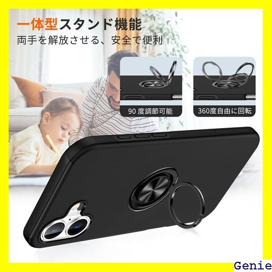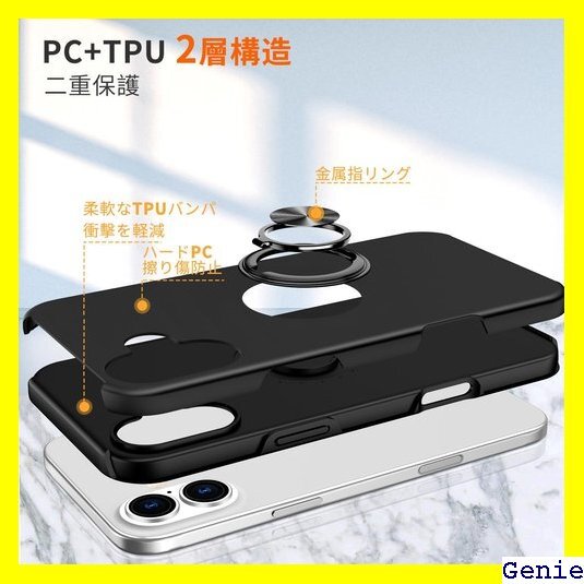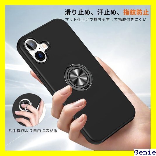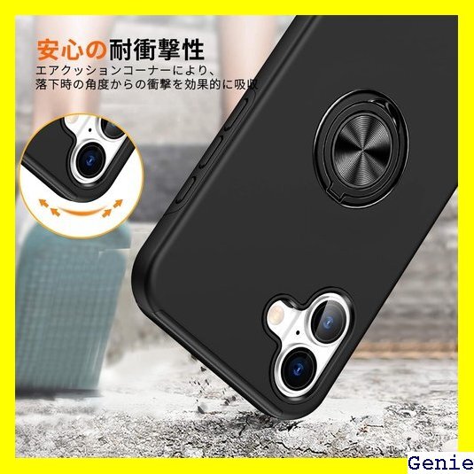 iPhone 16 用 ケース リング付き pc+tp ルダー対応 人気 衝撃吸収 傷つけ防止 ケース ブラック 25