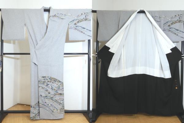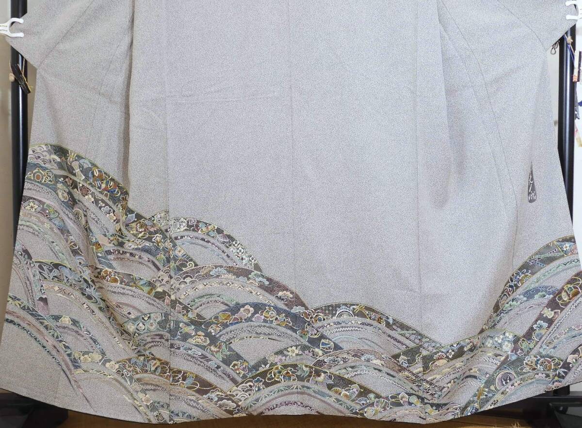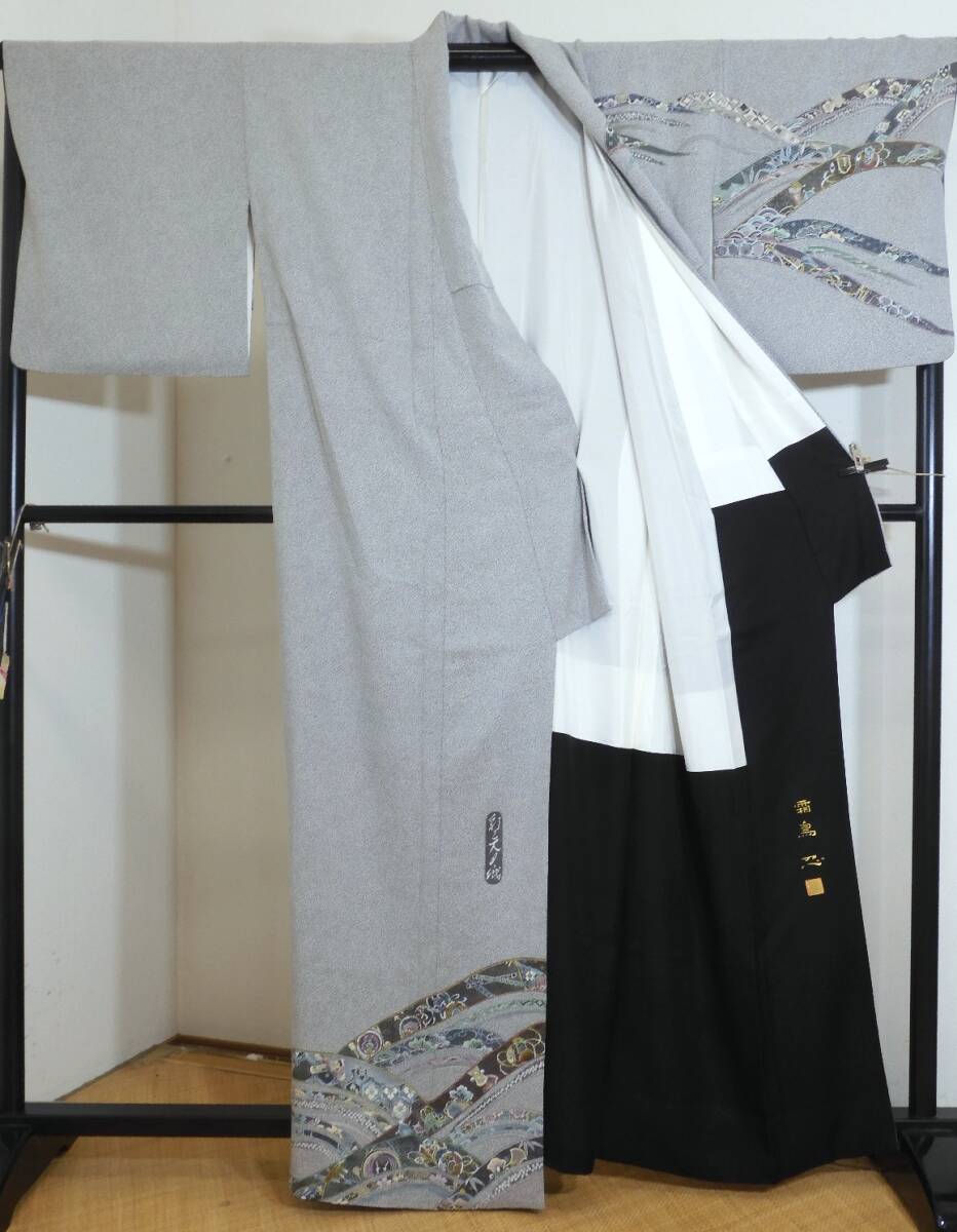 <銀の斧>正絹・彩天目織袷訪問着着物・日本画家 霜鳥忍作・吉兆文様・現代サイズ