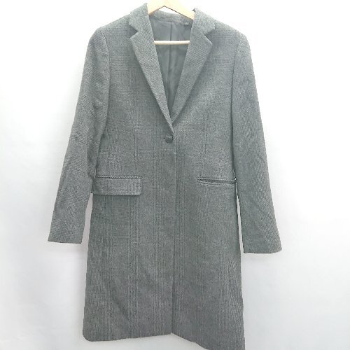 ◇ ⊇ UNIQLO ユニクロ チェック 長袖 ロングコート サイズM グレー系 レディース E