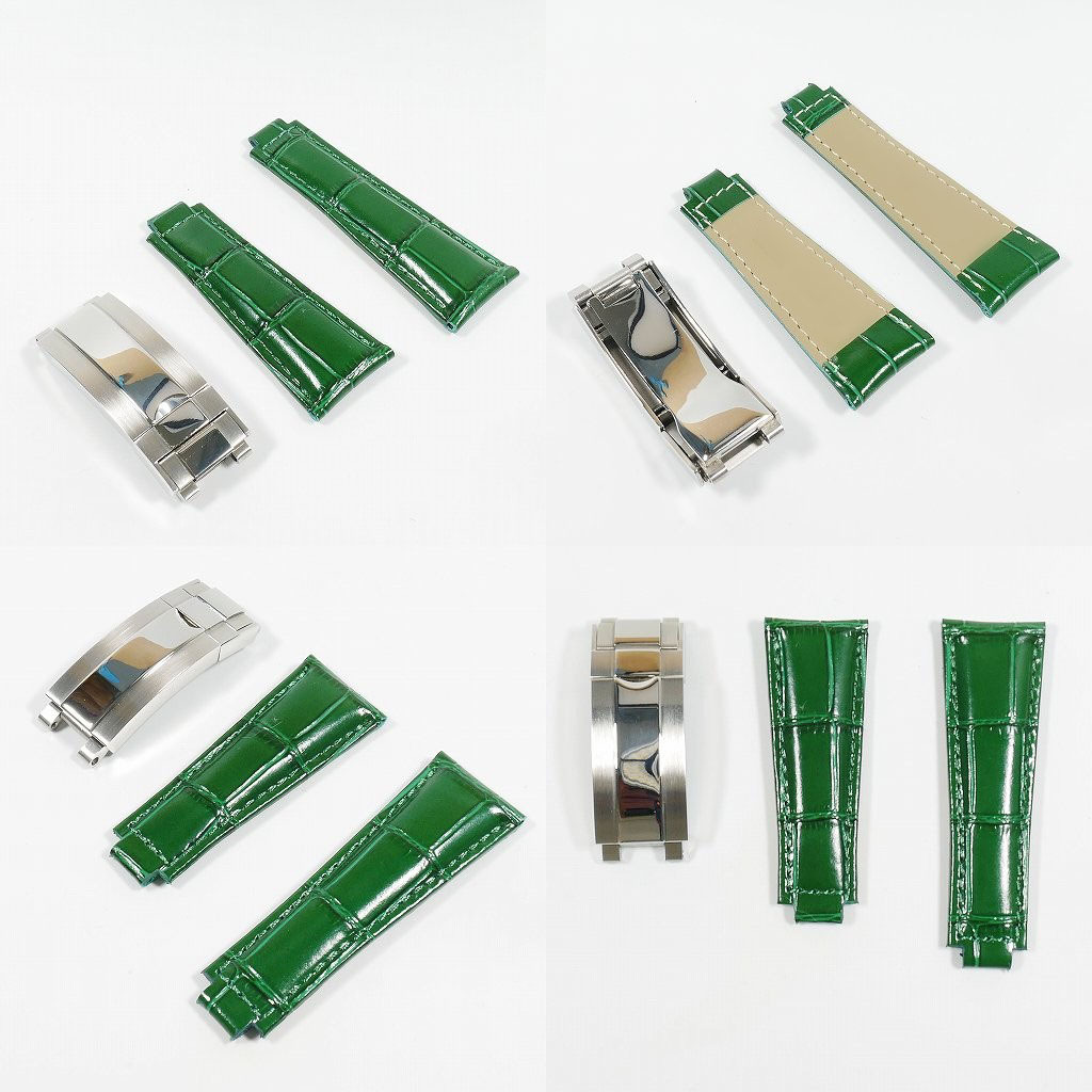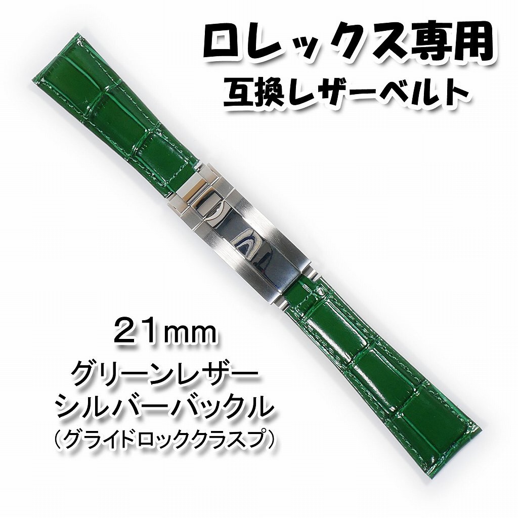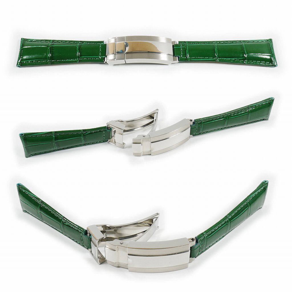 ロレックス専用(互換品) バックル(グライドロッククラスプ)付き レザーベルト グリーン 21mm