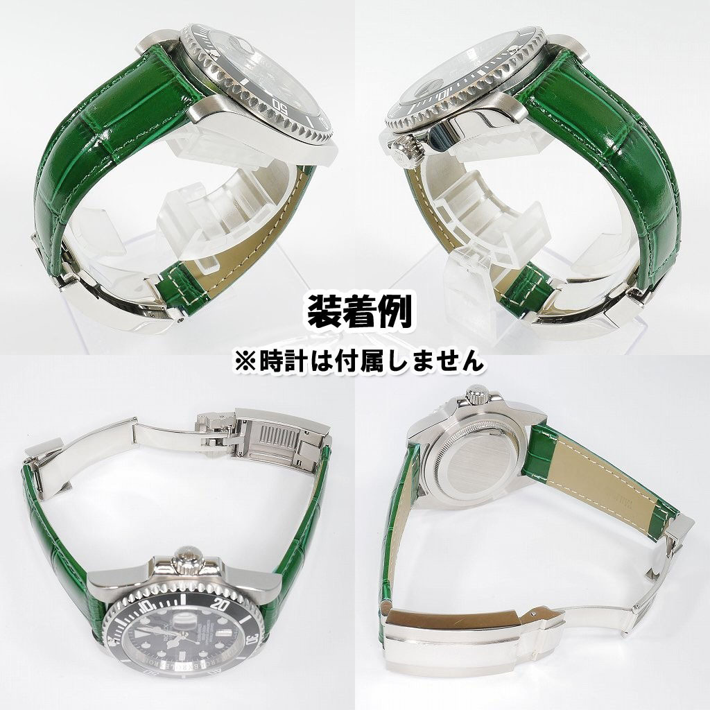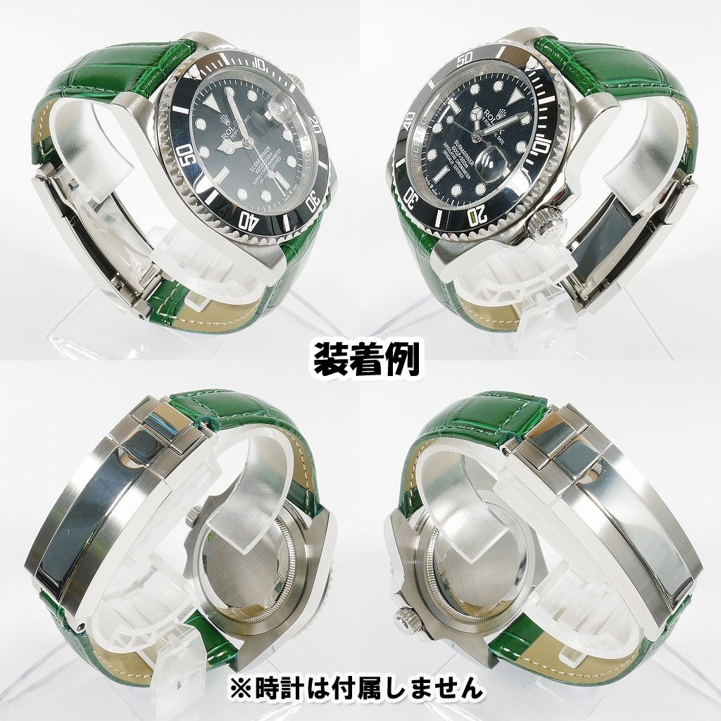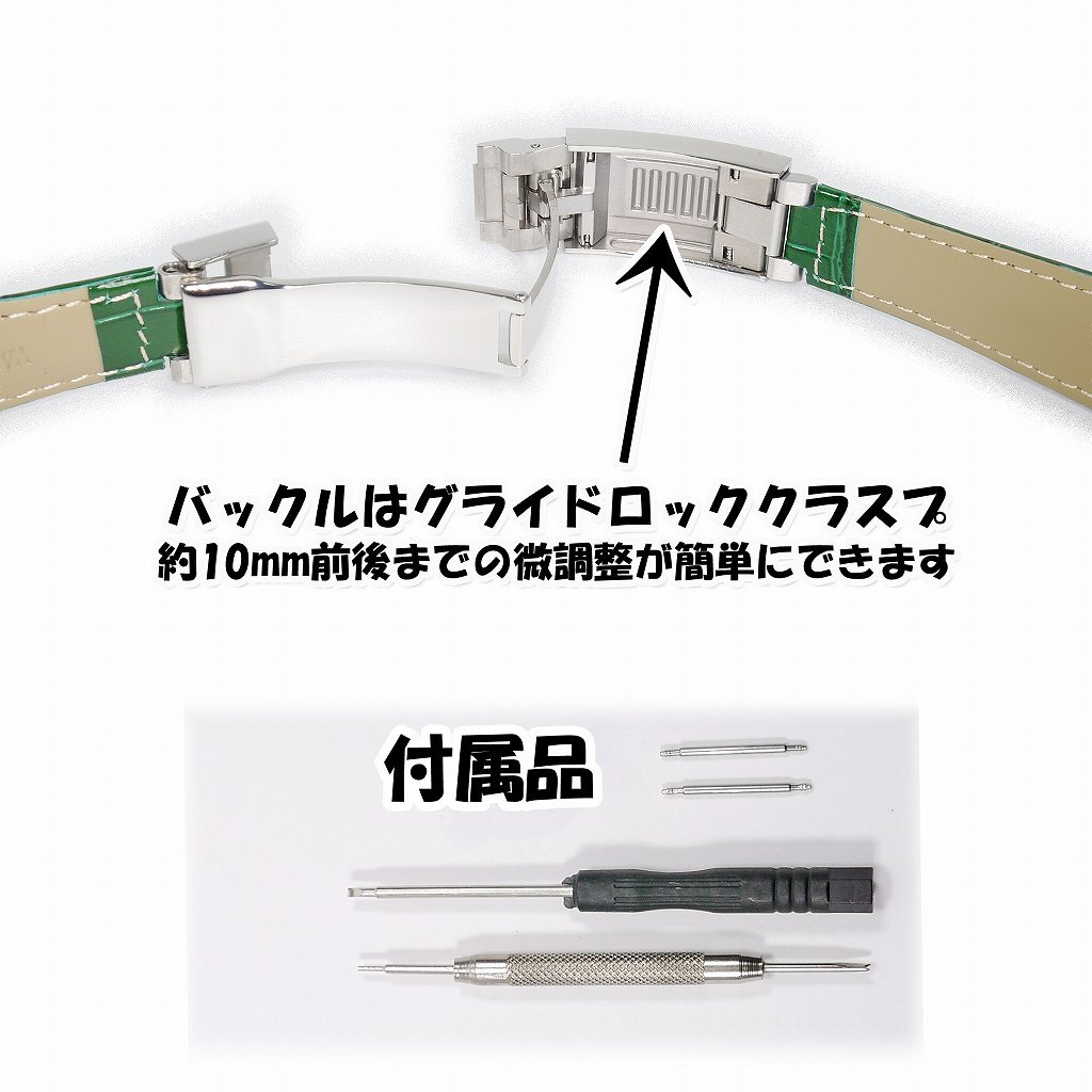 ロレックス専用(互換品) バックル(グライドロッククラスプ)付き レザーベルト グリーン 21mm
