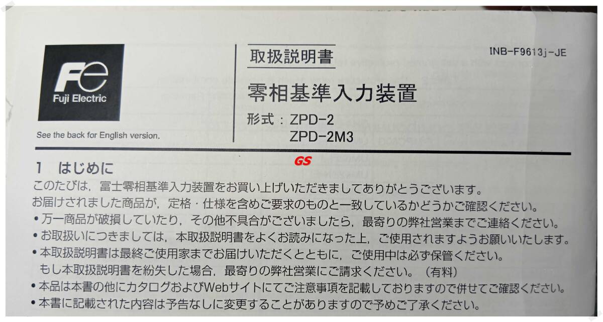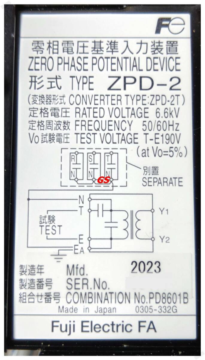 メーカー:Fe Fuji Electric ZPD-2 零相電圧基準入力装置 Zero phase Potential Device 未使用
