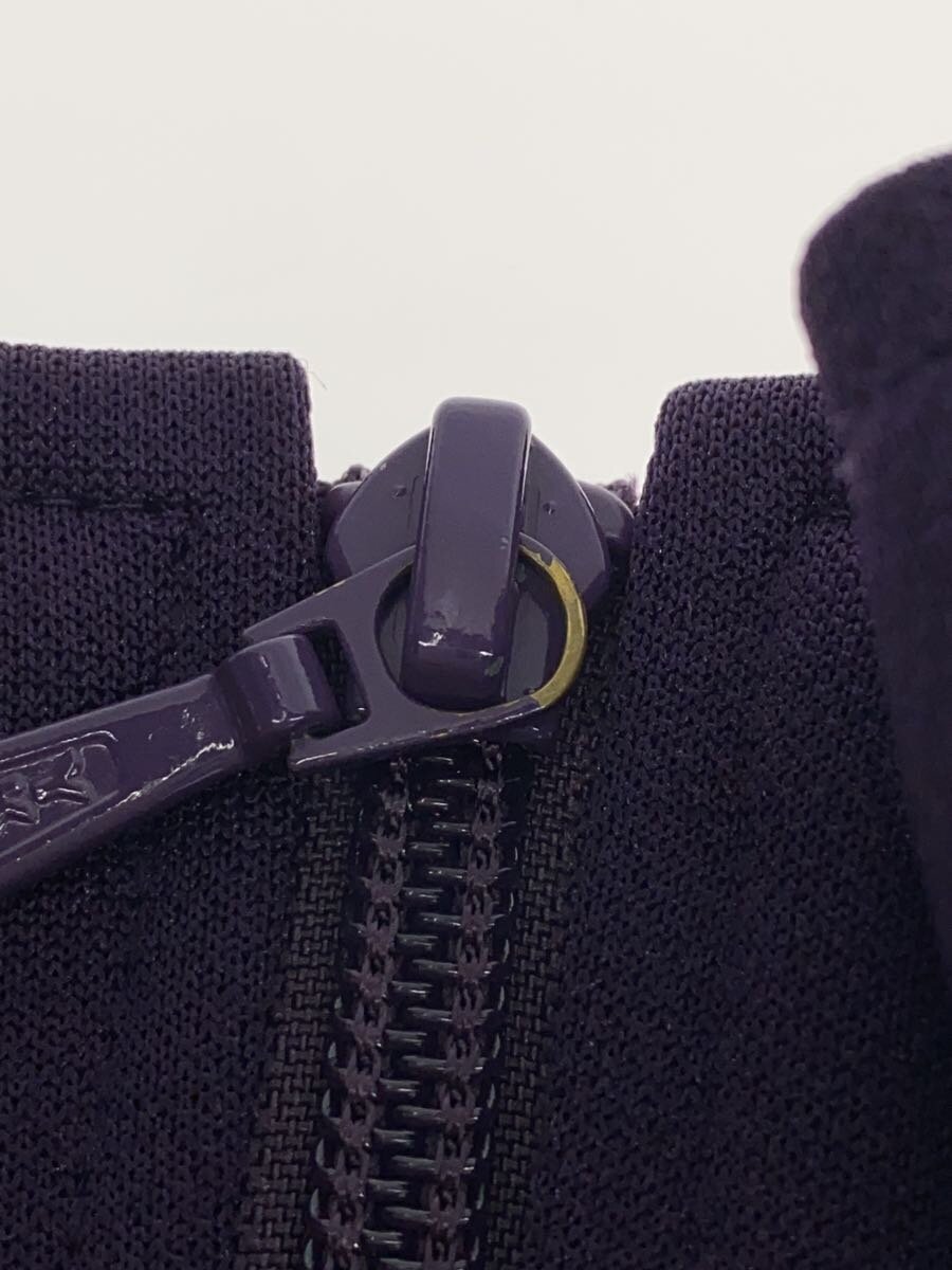 | 胸の蝶刺繍一部にわずかなほつれがございます。ファスナー一部塗装の剥がれがございます。裏地リブ縫い目に毛玉がございます。 |