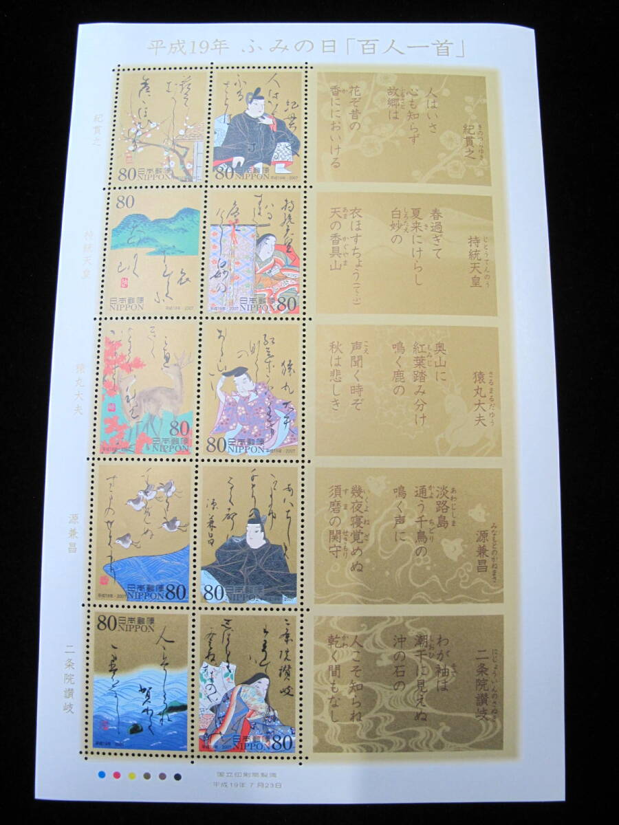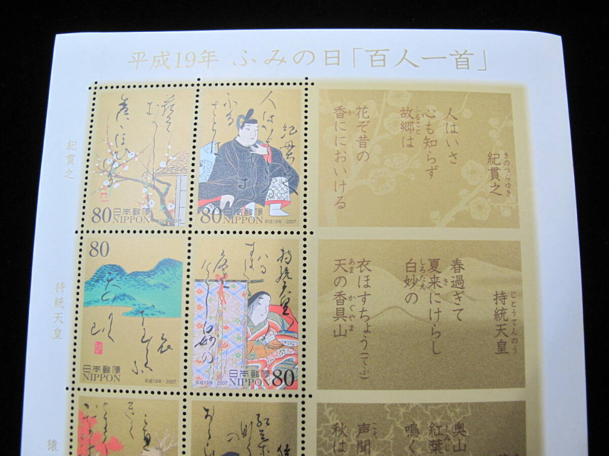 平成19年 ふみの日 百人一首 80円 記念切手シート ②