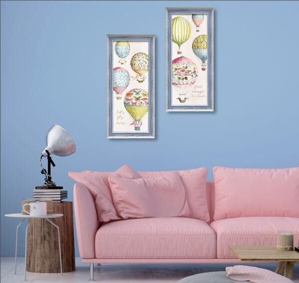 | カナダ女性作家「リサ オーディット」のアートフレームです。優しい色使いの気球が、お部屋を素敵に演出します♪ |