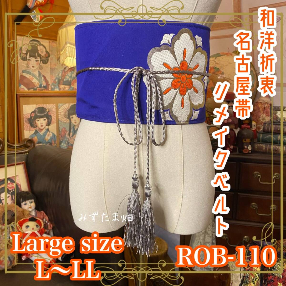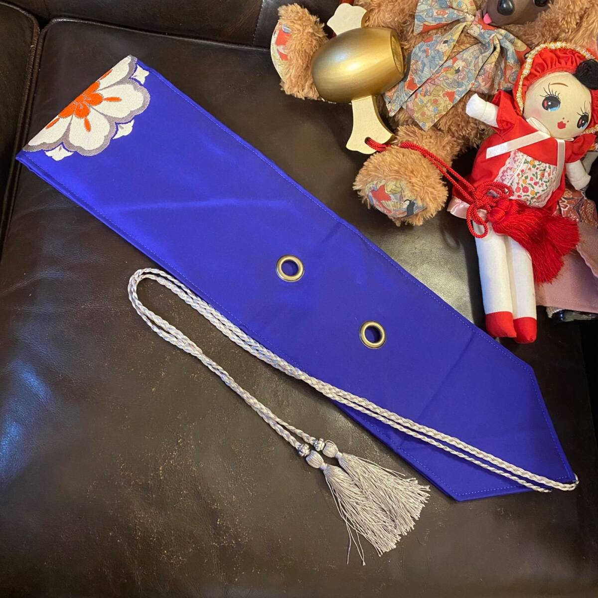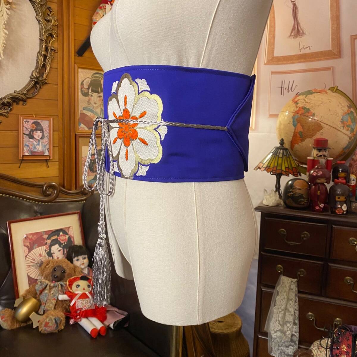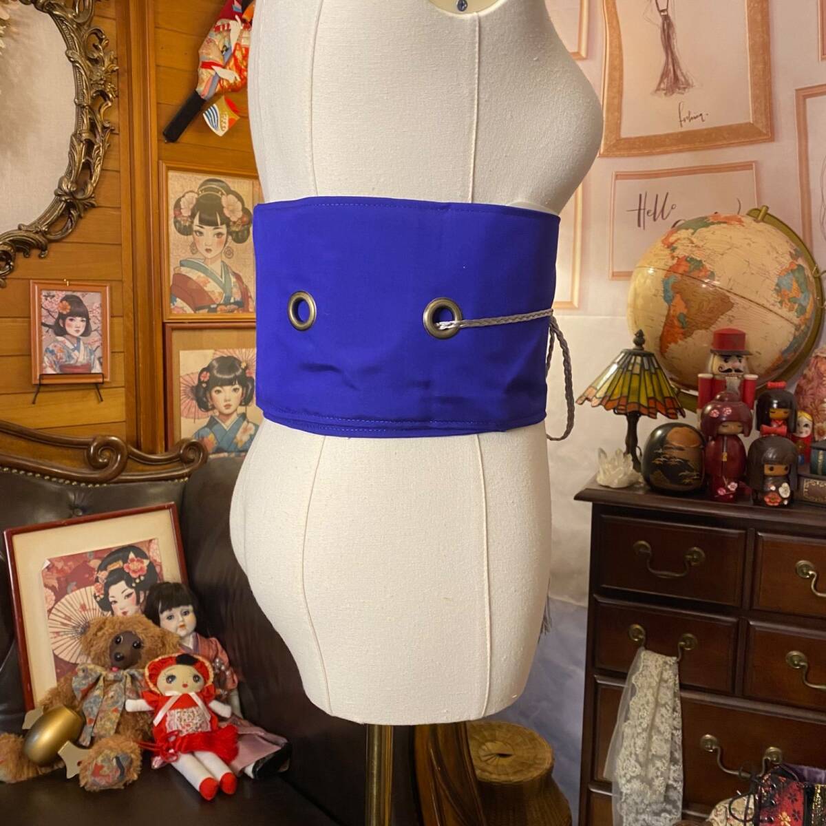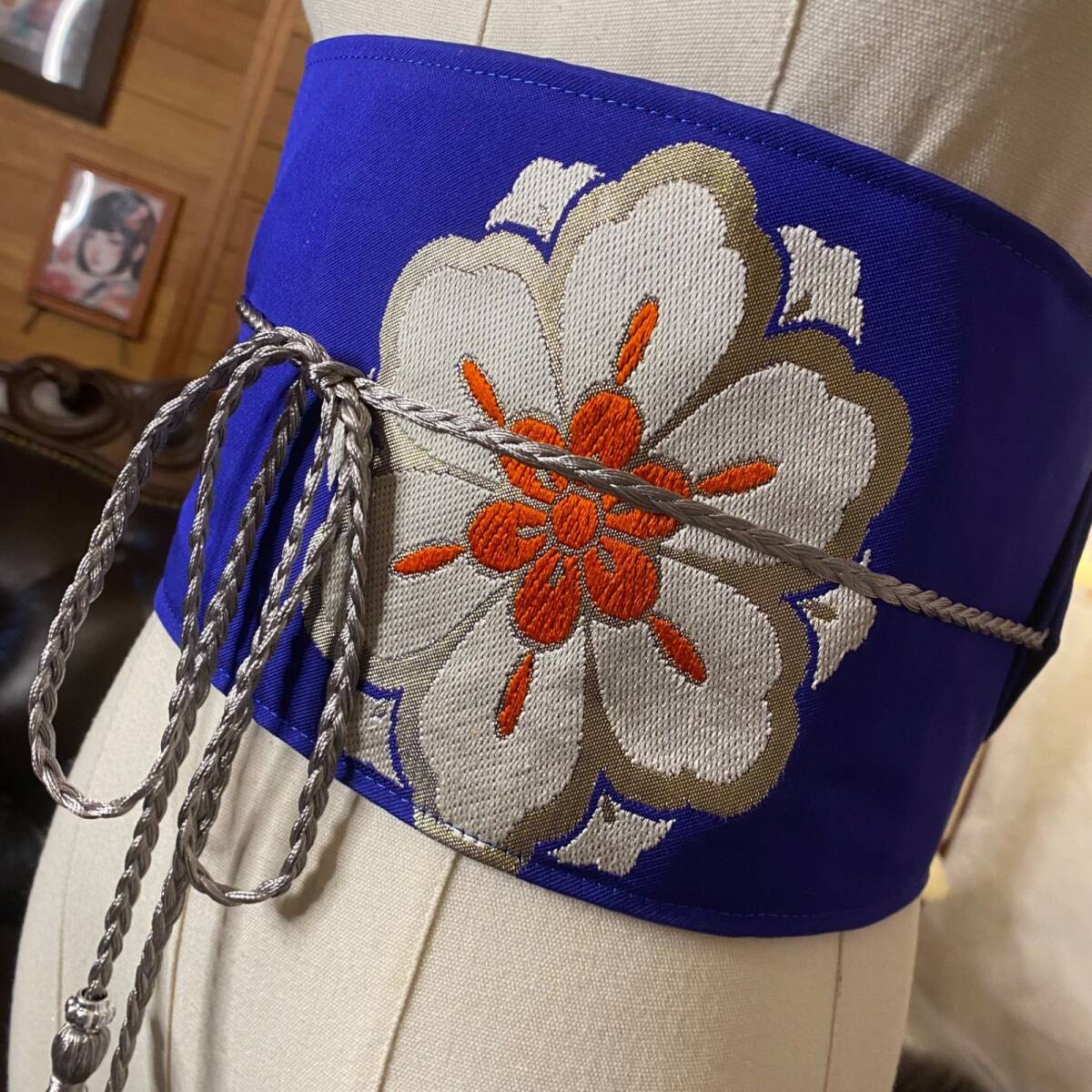 【名古屋帯 リメイク サッシュベルト 飾り帯 和洋折衷 ハンドメイド レトロ 古着 L〜LL対応 鮮烈な紫みのあるロイヤルブルー ROB-110】