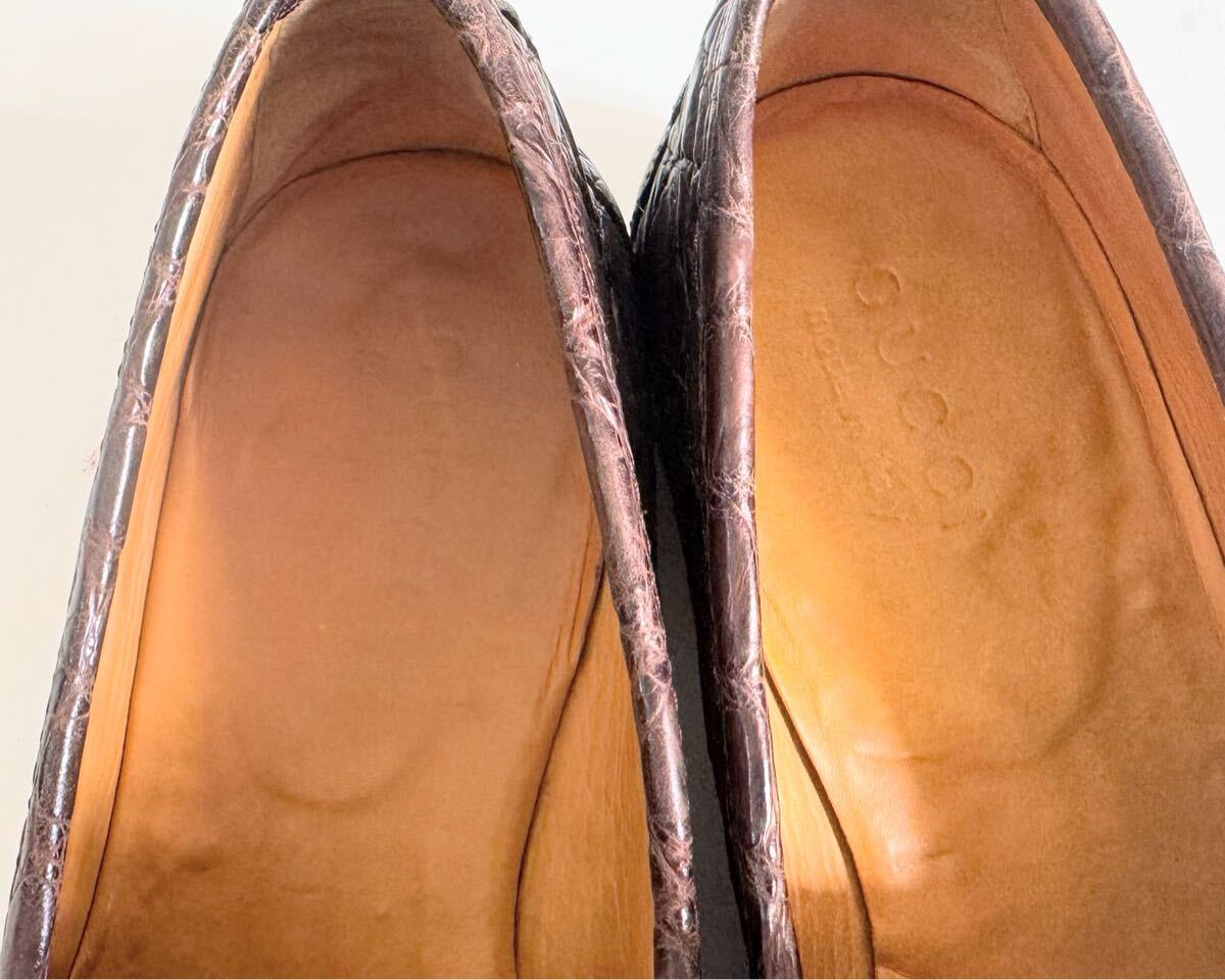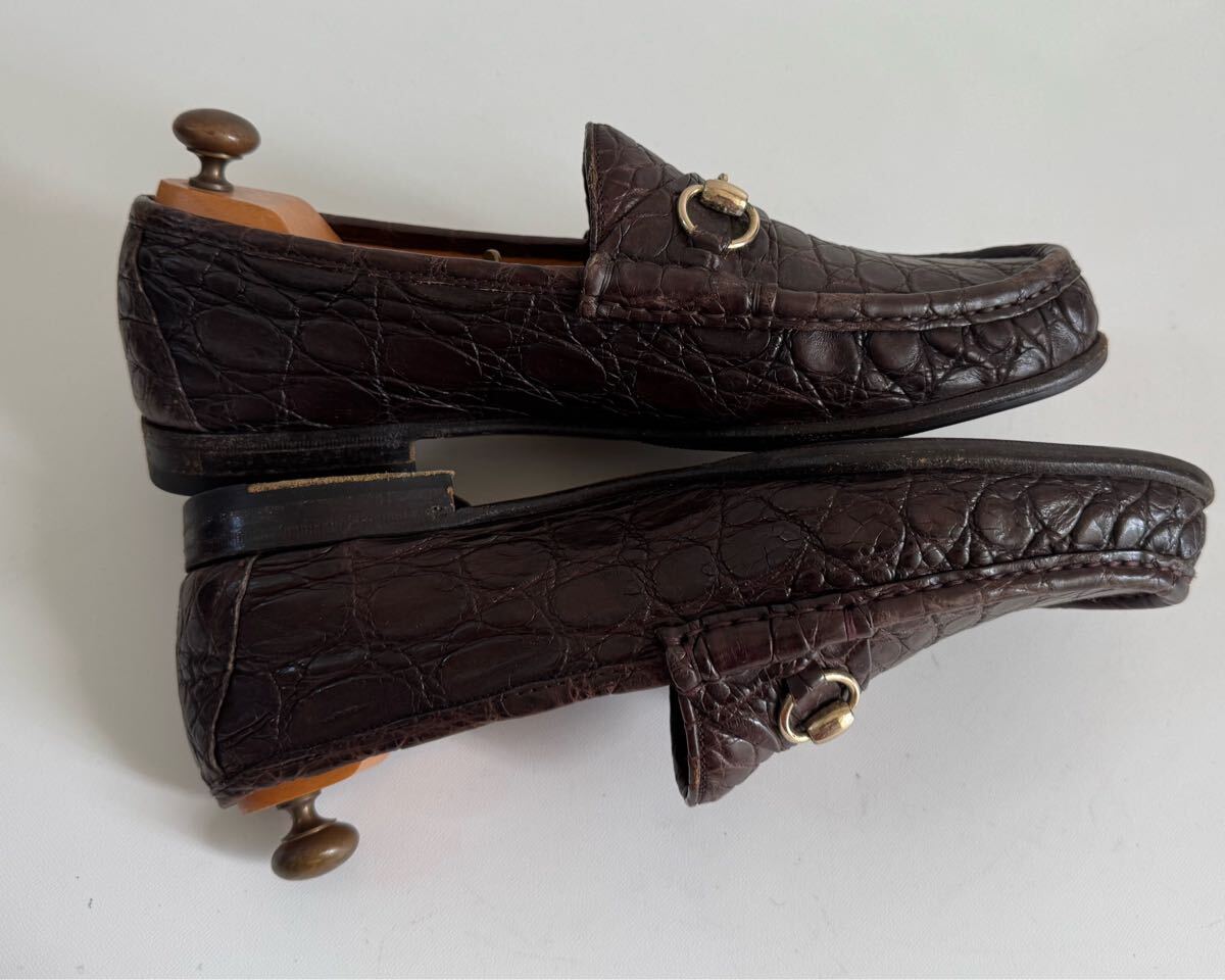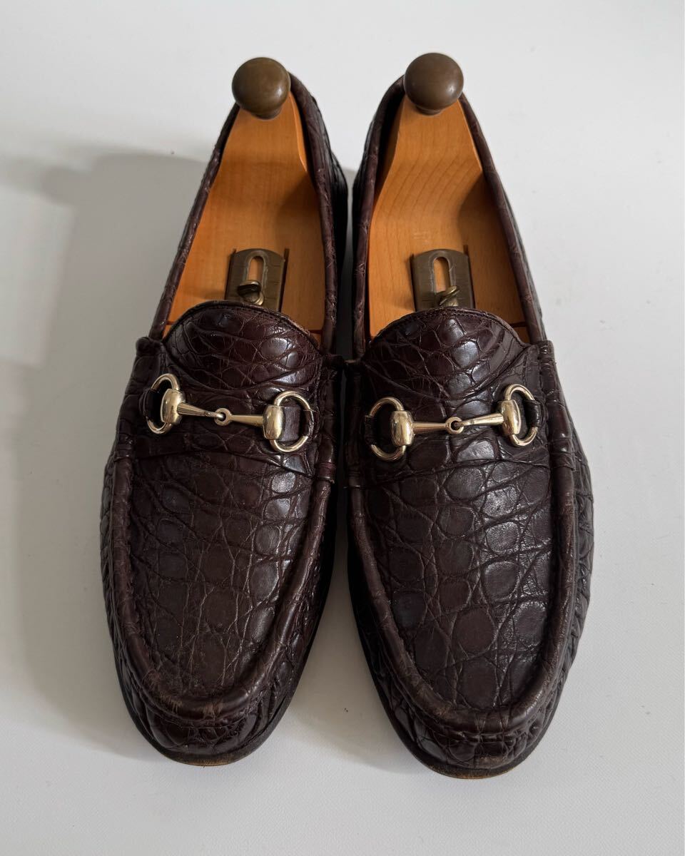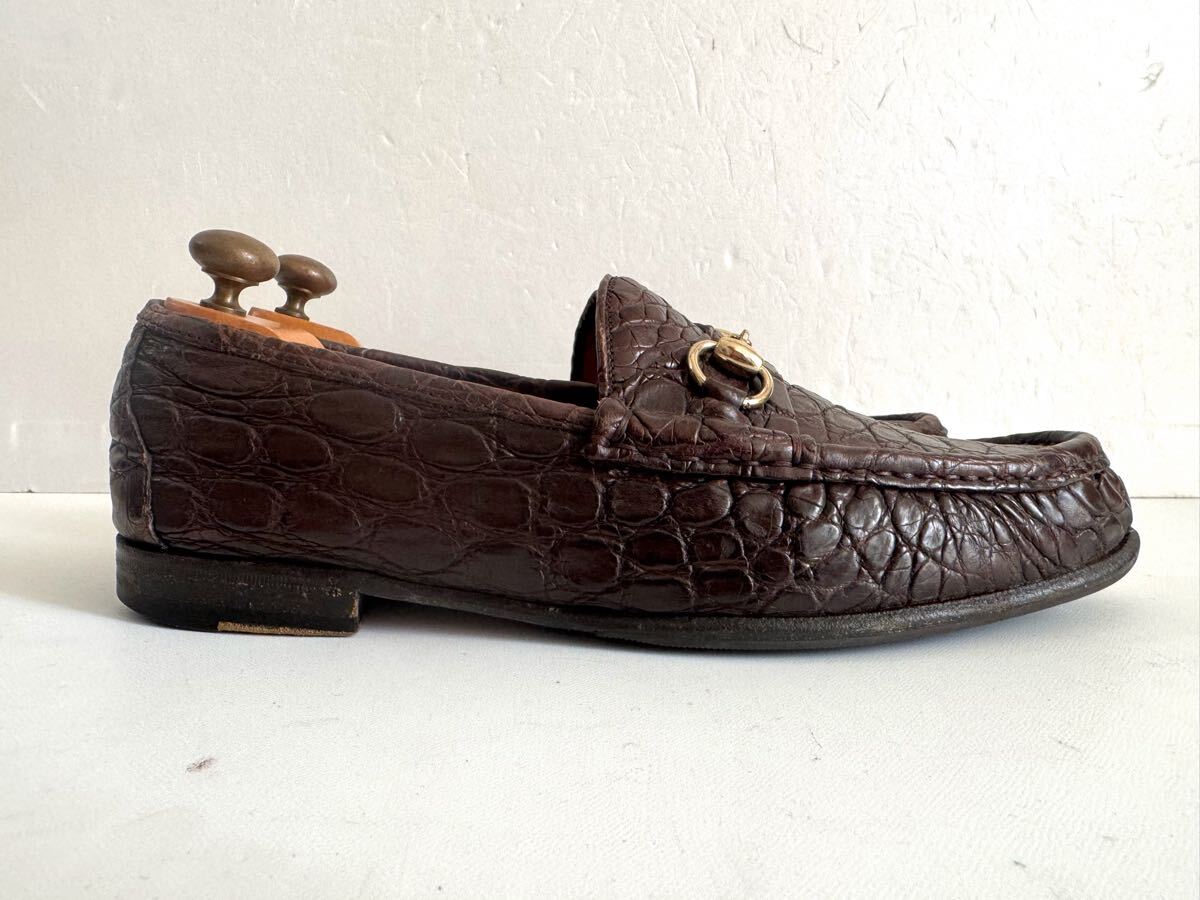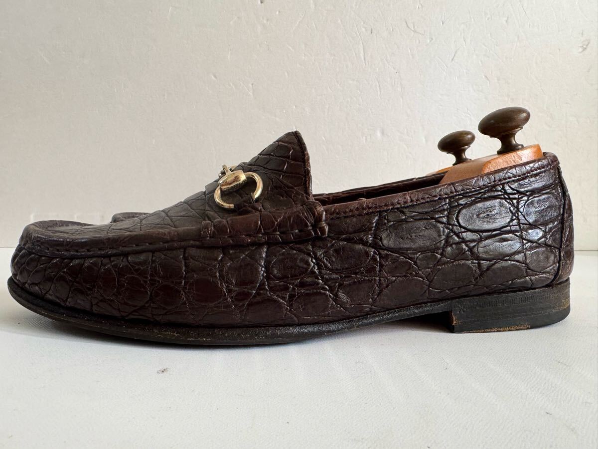 最高級 GUCCI size9D イタリア製クロコローファー クロコダイル ビット ホースビット スリッポン ブラウン ゴールド グッチ 革靴