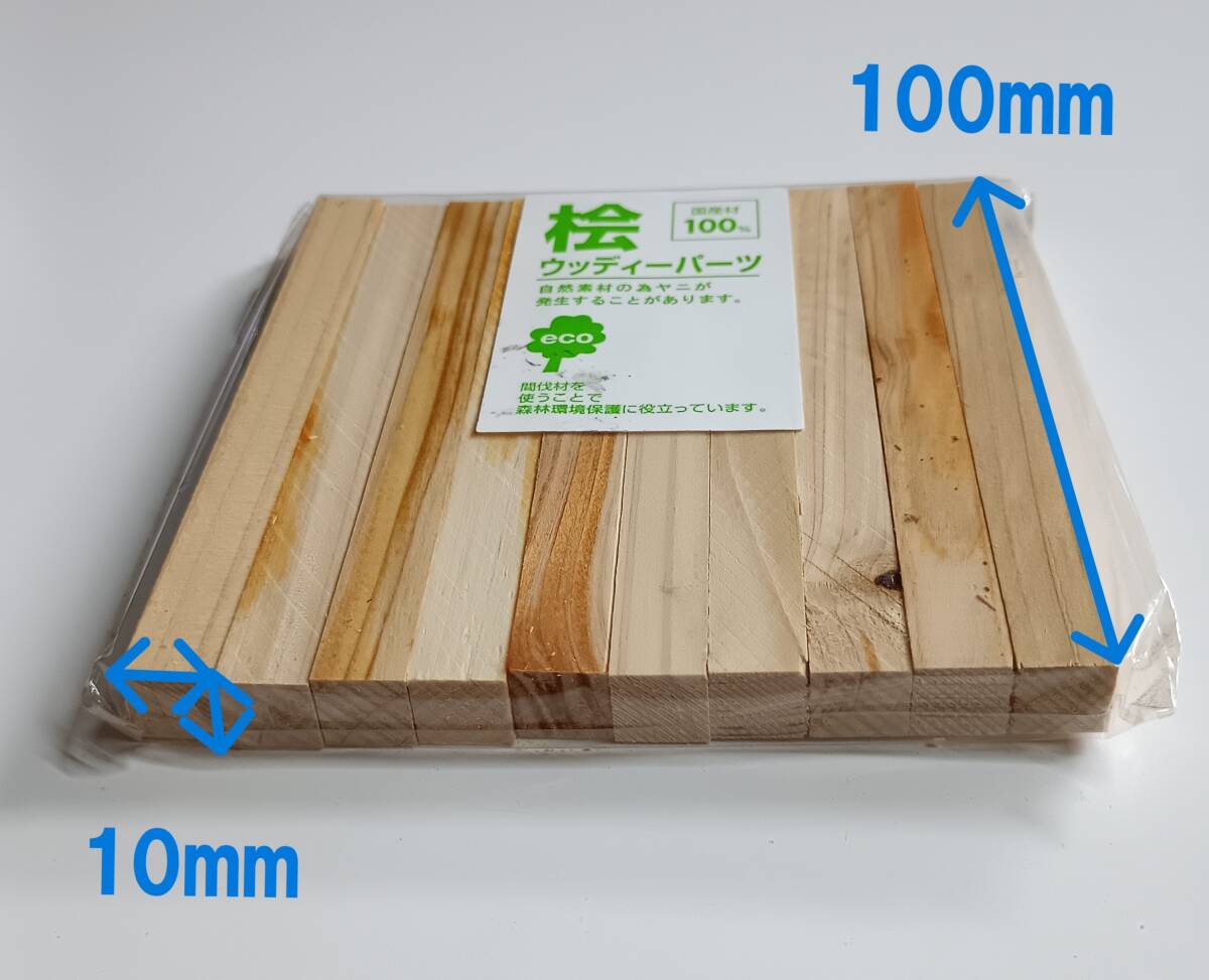 桧ひのき★角棒★国産★木材★材木★DIY★ウッドパーツ★10×10×100mm80本)