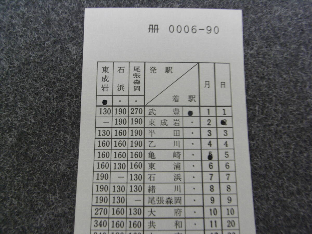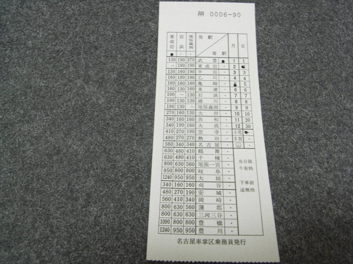 車内乗車券 名古屋車掌区乗務員発行 0006-90 武豊線用 車内補充券