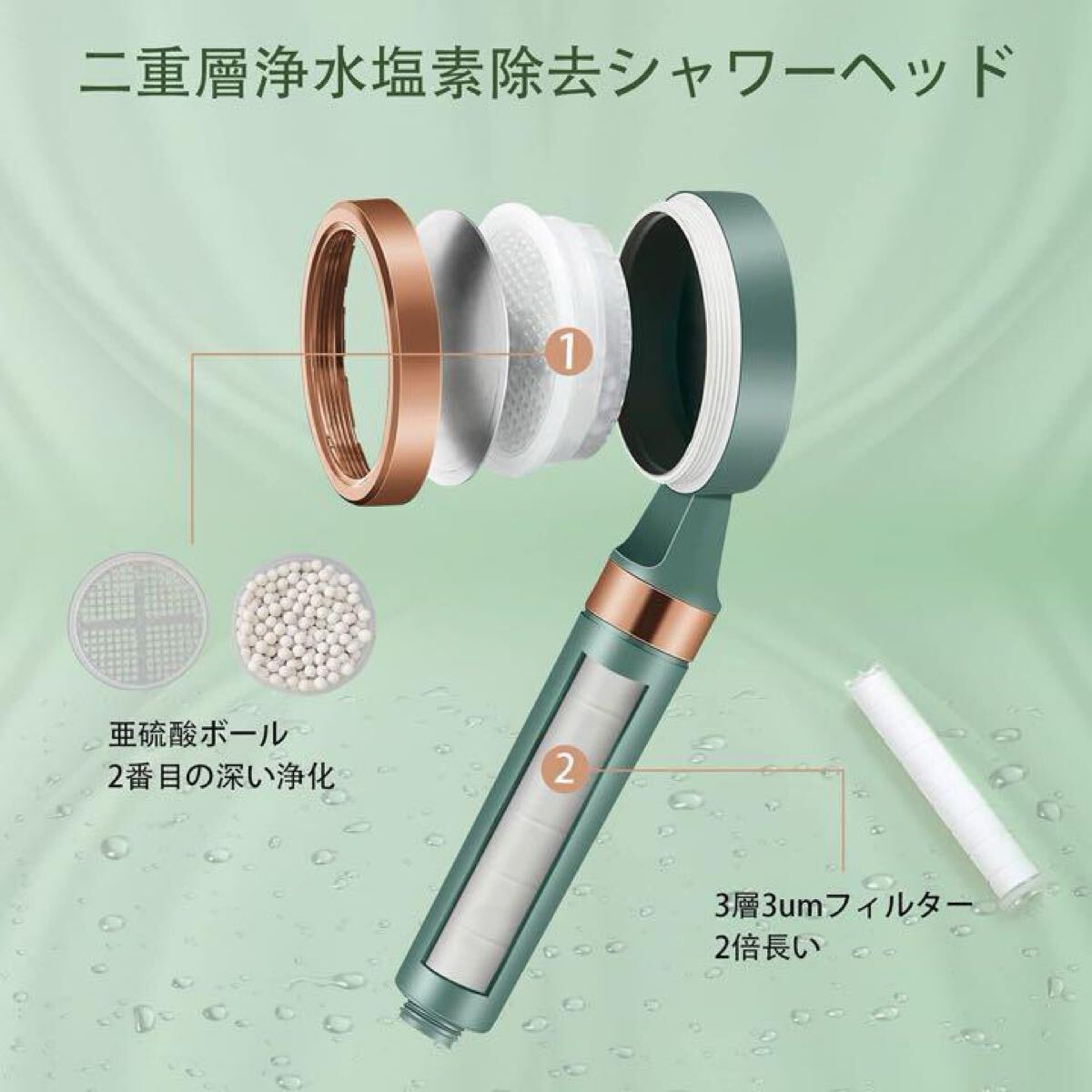 【進化版2番目の深い浄化】大切な家族のために、3um3層のフィルターと亜硫酸ボールは水道水に含まれている90%以上の残留塩素をしっかり除去します。内蔵のフィルターは不純物、シルト、微生物、残留塩素削除して肌がピリピリになっていません。亜硫酸ボールは残留塩素をもう一度削除して、傷んだ髪や敏感な肌、赤ちゃんにも安心してお使いいただけます。 一般家庭なら約50,000Lの塩素除去能力があります。