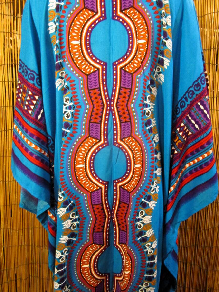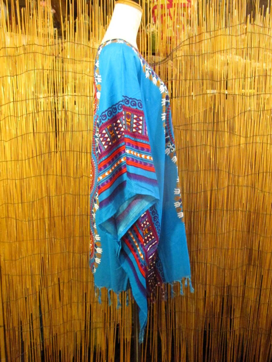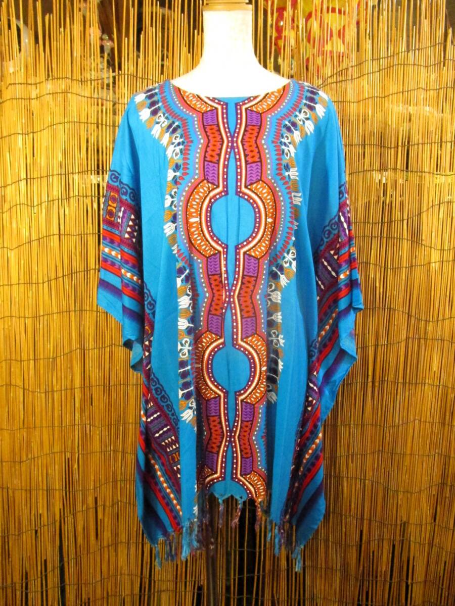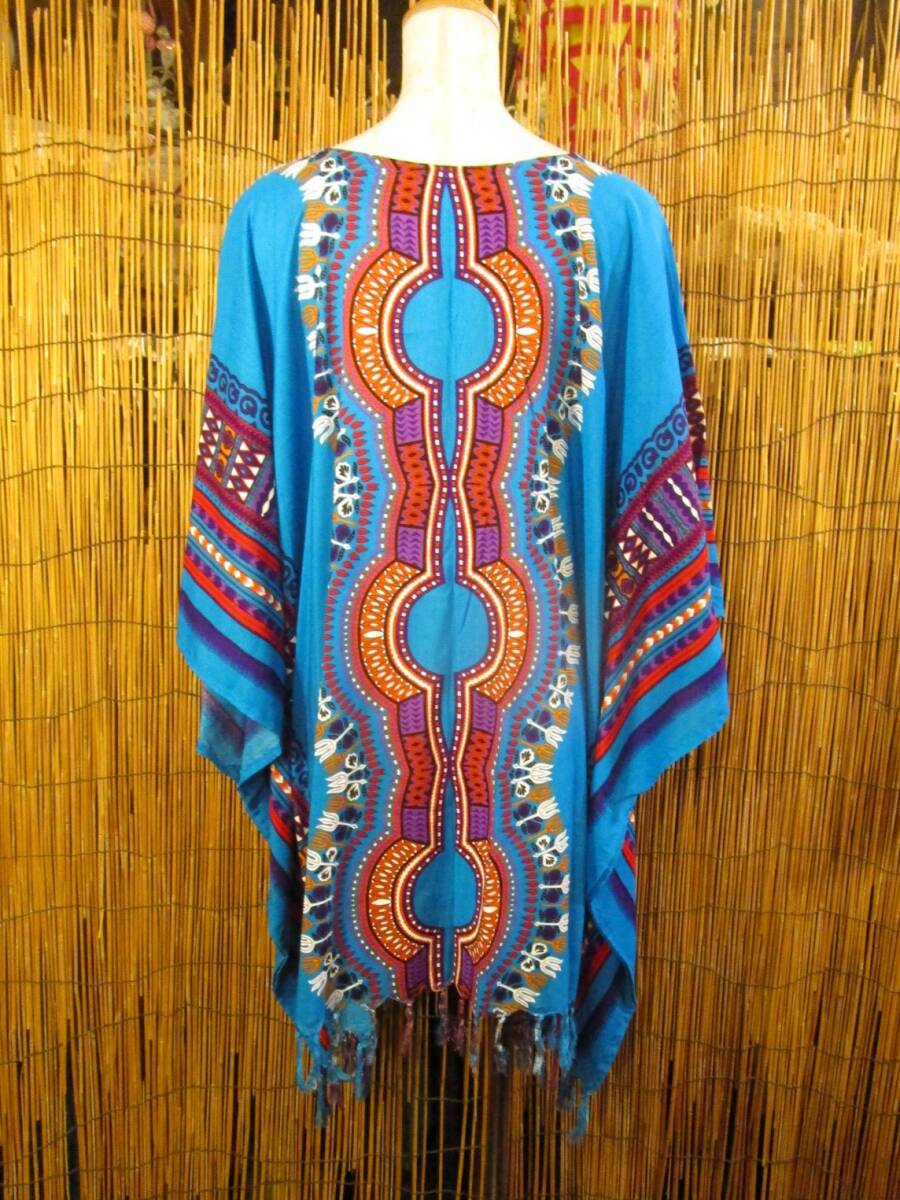 ⑬新品*男女兼用*レーヨン素材*アフリカンプリント*ダシキ*ゆったりサイズ*フリンジ*ポンチョ