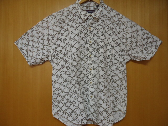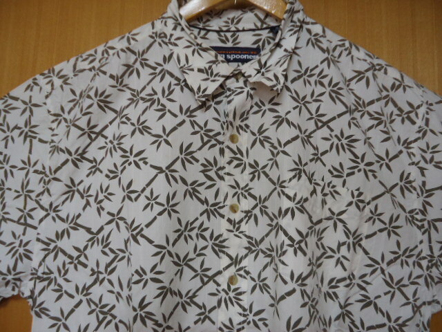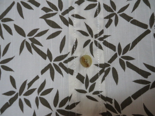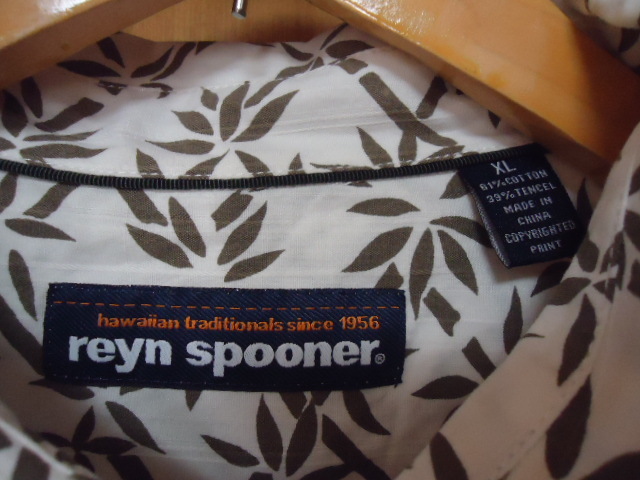 ハワイにて、古着として、購入しました。レインスプーナー社製。オールオーバー。ロゴシェルボタン。コットン61%・他39%混合素材です。カラーは、クリーム色地に、モスグリーン色竹・笹柄です。クリーニング済み。中国製。なお、当商品のサイズ表示は、全てUSAサイズです。サイズ表示は、XLですが、平置き実寸を重視して下さい。なお、少々誤差は、ご了承下さい。肩幅約53センチ・身幅(脇の下)約60センチ・丈約77センチです。目立ったダメージありませんが、USED物なので、古着に、ご理解のある方・24時間以内に、お手続き入力後、期限内にかんたん決済、出来る方のみ、ご入札をお願い致します。数字はこちらの整理番号です。この商品は、1点物です。 ※※発送方法・送料は、レターパックライト郵便(追跡可能・補償無し)ですと、430円又は、レターパックプラス郵便(追跡可能・手渡し配達・補償無し)ですと、600円又は、ゆうパック送料着払い便(持ち込み割引有り・追跡可能・手渡し配達・補償有り・かんたん決済時は、送料0円ですが、送料のみ到着時支払い)です。※※ ☆★★★★★☆送料は、変わりますが、何点でも、同梱包可能です。数点落札されましたら、まとめて取引を、選択お願いします。☆★★★★★☆