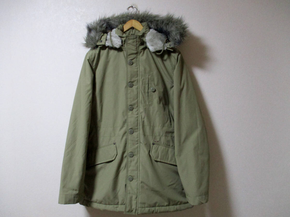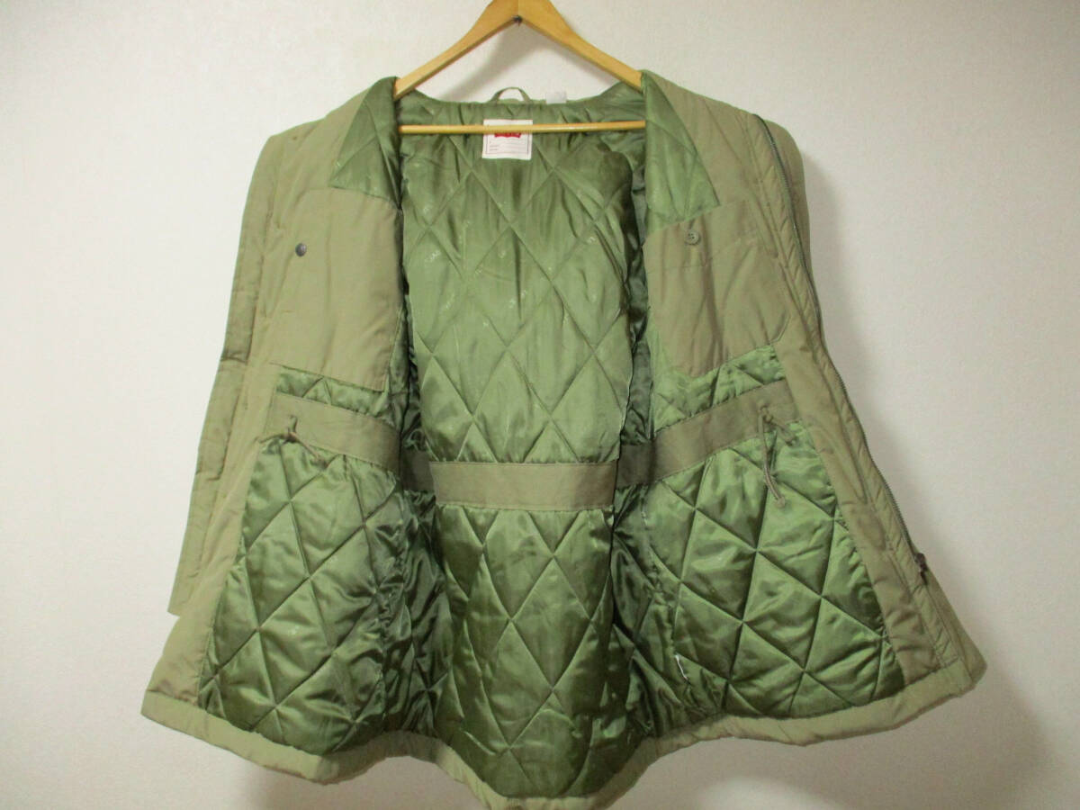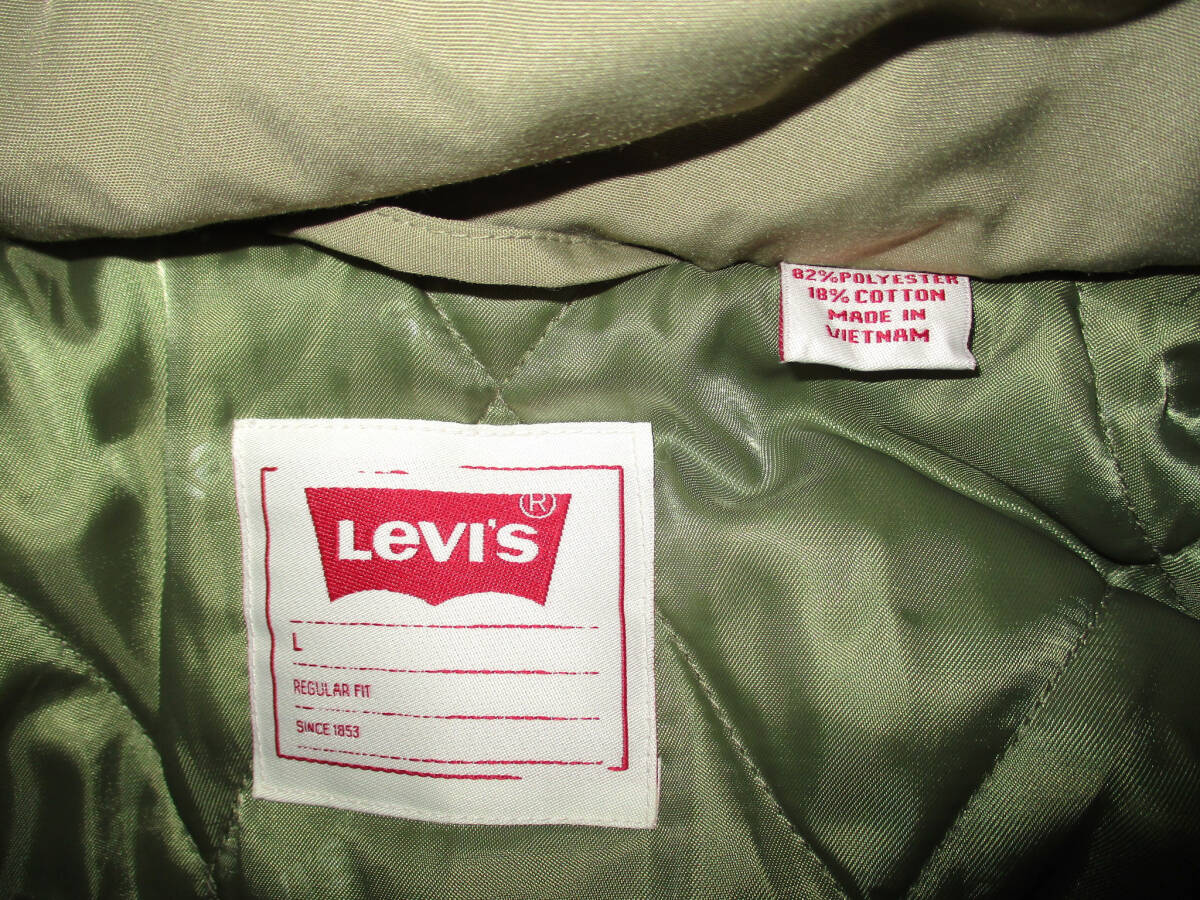 リーバイス Levi's フードコート 中綿 モッズコート ベージュ、カーキ系 サイズL です。素材はポリエステル82、コットン18です。中綿入りです。色はベージュ、カーキです。内側の品質タグは切られております。