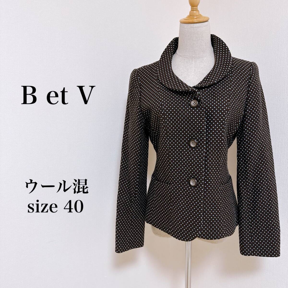 【美品】B et V ブルーベル アウター ジャケット 丸襟 ドット ブラウン 40 古着 匿名配送 レディース 【j8-224】