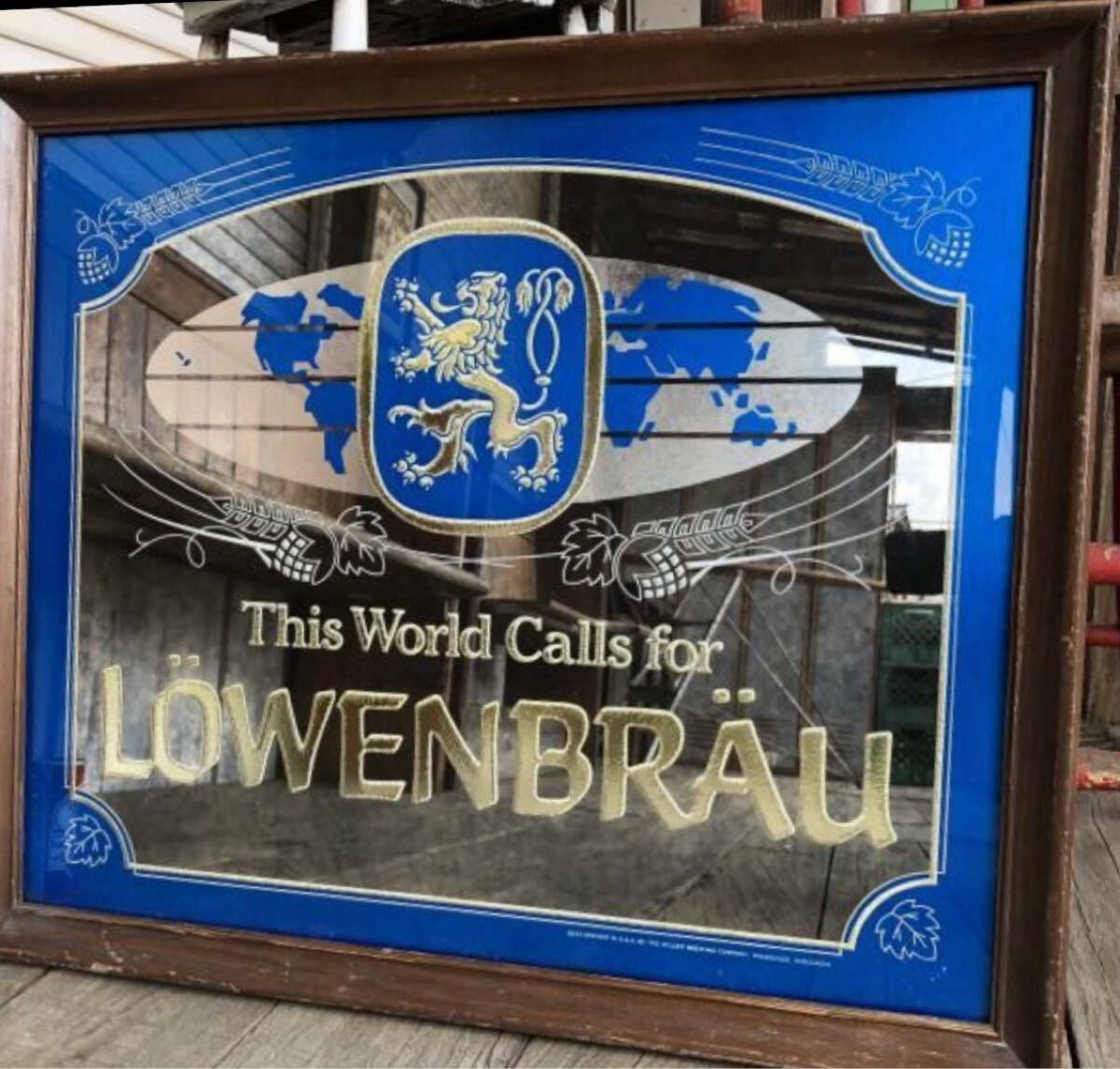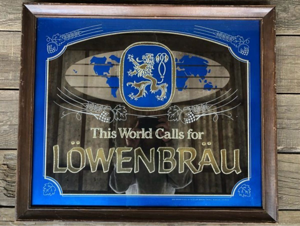 レーベンブロイの鏡です。レーベンブロイは、ドイツ・ミュンヘン発祥のビールブランドで、600年以上の歴史があります。