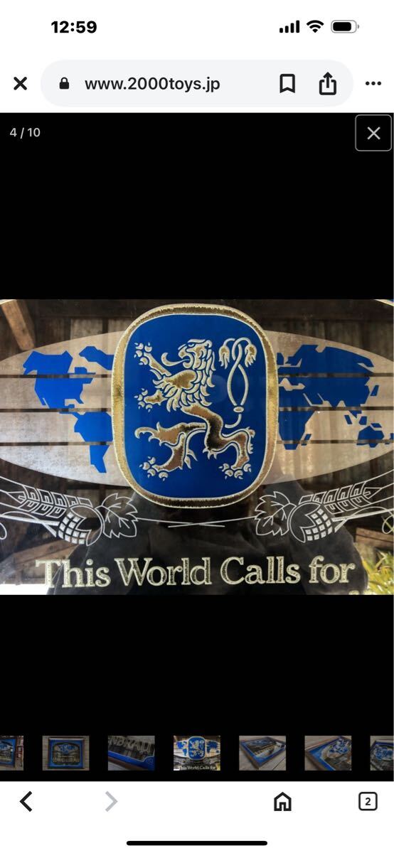 This World Calls for LOWENBRAU」という文字と、ライオンのロゴが描かれています。また、世界地図の背景が描かれており、レーベンブロイが世界中で愛されていることを示しています。