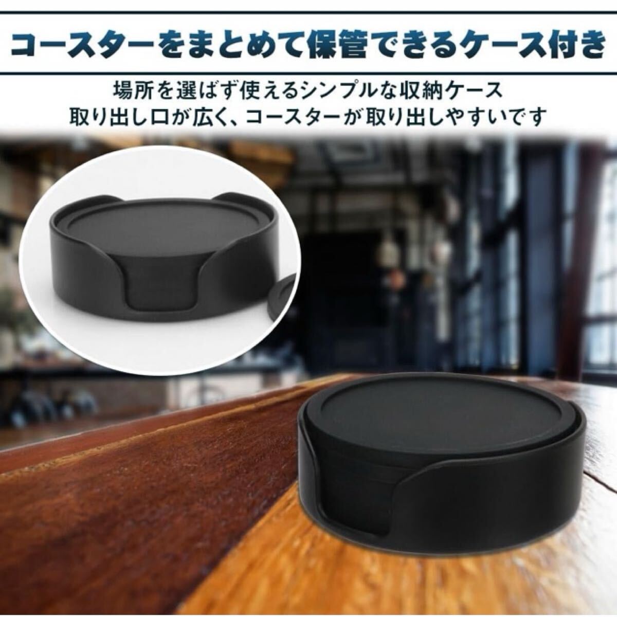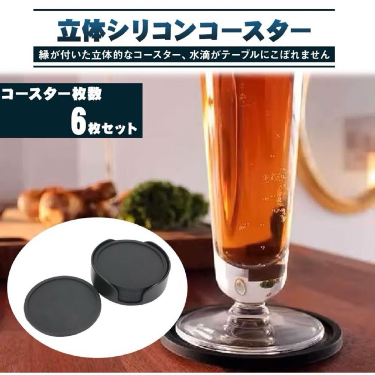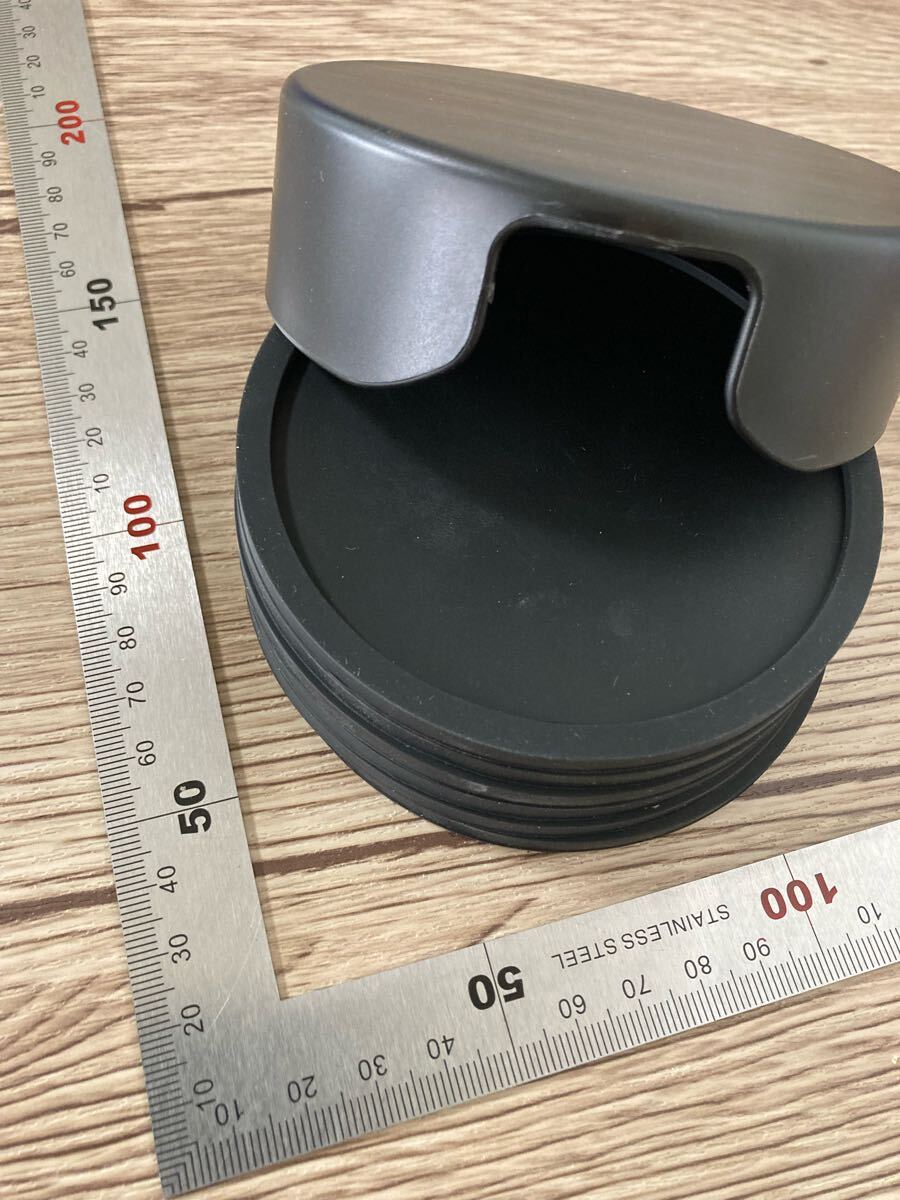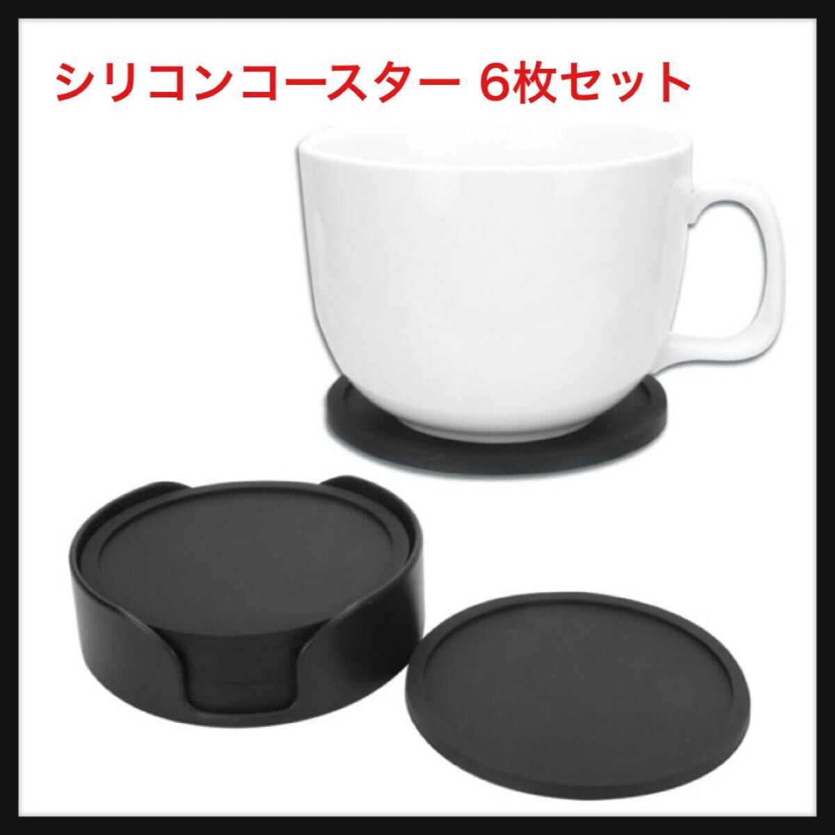 【セット内容】コースター×6点 収納ケース×1点 【サイズ(約)】直径:10cm 内径:8.8cm 高さ:5mm 【カラー】ブラック 【材質】シリコン