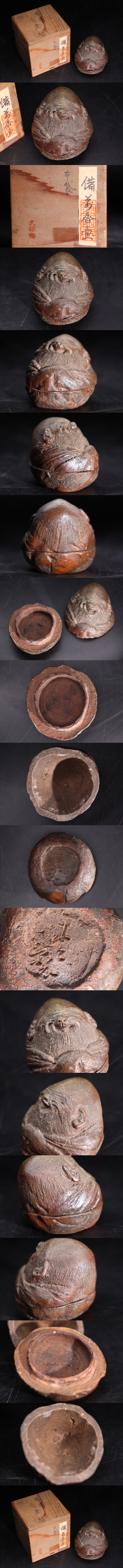 | 時代 古備前 在銘 「 備前 香壺 布袋 」 木箱付 / 備前焼 細工物 香合 香道具 煎茶飾 .G1618 |