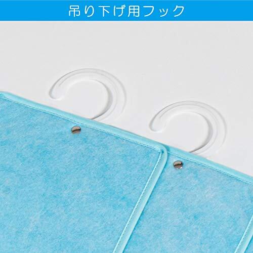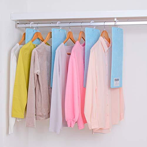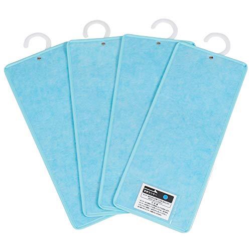 商品説明 | 【商品仕様】:サイズ/約18×50.5cm(フック含む)、カラー/ブルー、内容/4枚、材質/ポリエステル80%・合成繊維(アクリレート系)20% 【除湿してダニの繁殖を抑制】:シリカゲルの約2〜3倍の吸湿性がある特殊繊維を使用。湿気を吸収することでダニの発生を抑制。 【クローゼット内などを除湿】:クローゼット内に吊り下げて空間を除湿したり、ハンガーのフックに掛けて衣類付近の湿気を吸収。 【天日干しで吸収性能は回復】:湿気を吸っても天日干しで吸収性能は回復。繰り返し使えて経済的。干し時が分かる湿度センサー付き。 【さまざまなところで使える】:吊り下げずにタンスの引き出しや、押入れの中、衣装ケースの中に入れるなどさまざまな場所で使える。