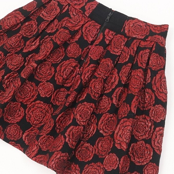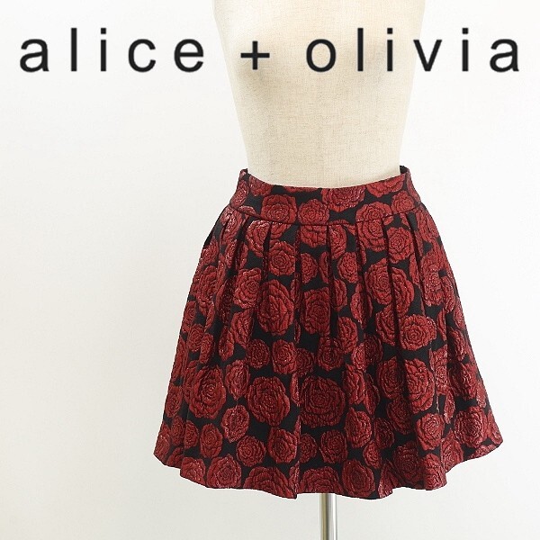 | ◆alice + olivia アリス&オリビア ラメ混 バラ柄 タック フレア スカート ブラック×レッド 0 | |