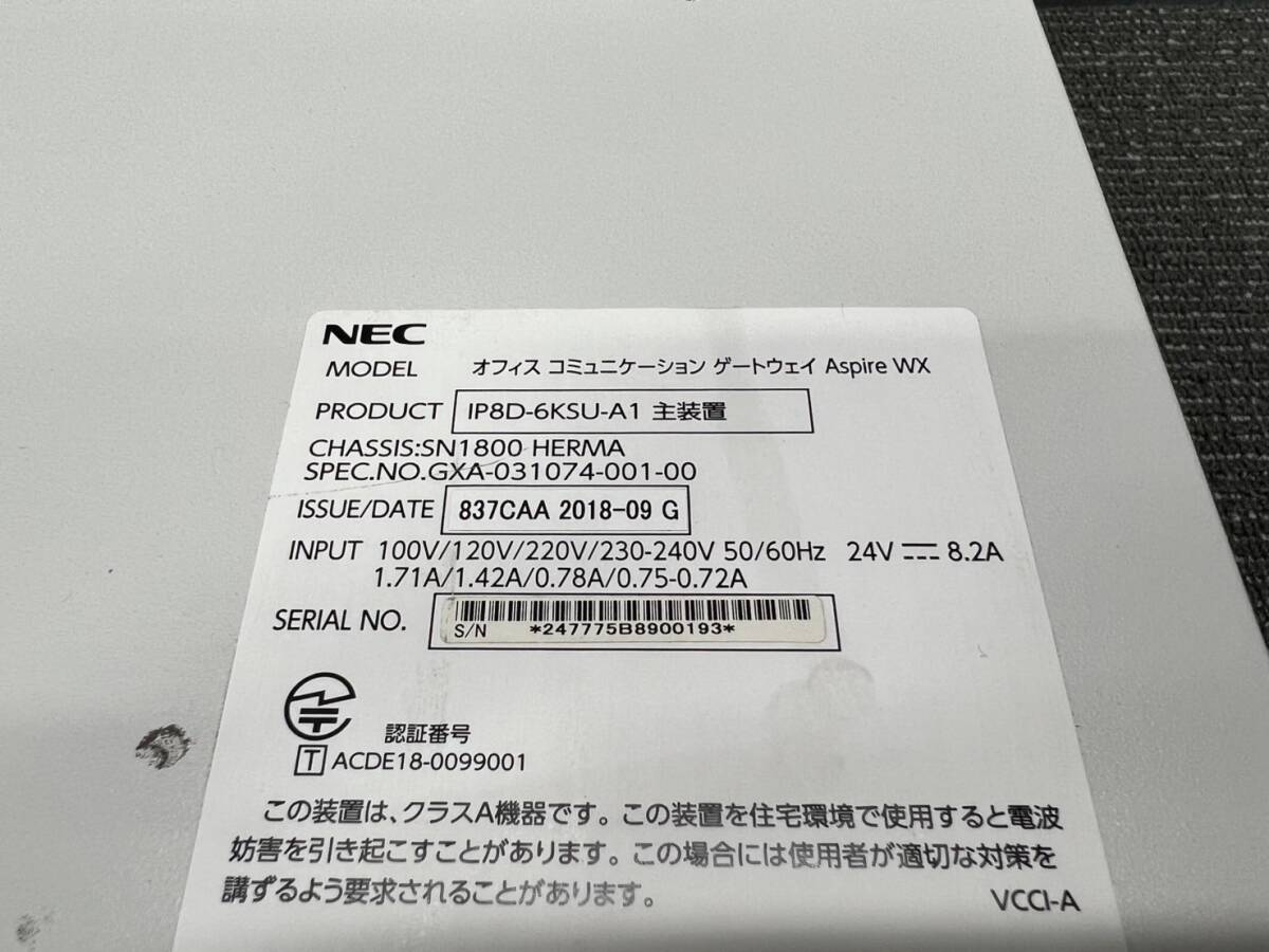◆管1860◆全国送料無料◆NEC◆Aspire WX◆ビジネスフォン 主装置◆IP8D-6KSU-A1◆CPUユニット基盤付き◆2018年製◆動作確認済み