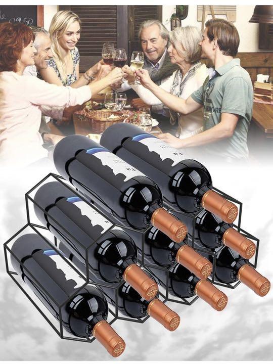 ワインラック 金属製 ワインホルダー ボトルラック 赤ワイン棚 9本 用 積み重ね式 ck105