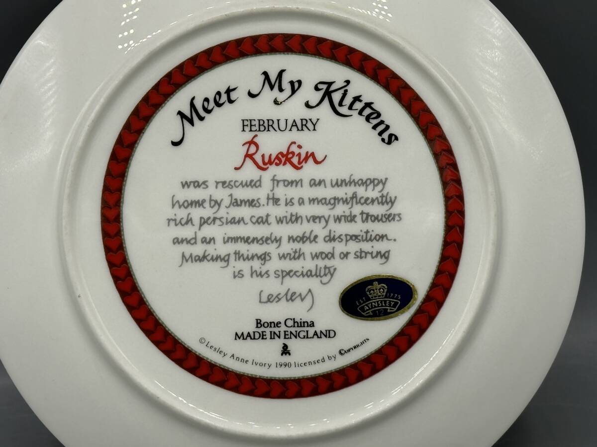 エインズレイ レズリーアンアイボリー 飾り皿 2月 子猫 カレンダープレート Meet my kittens 猫 (#-15)