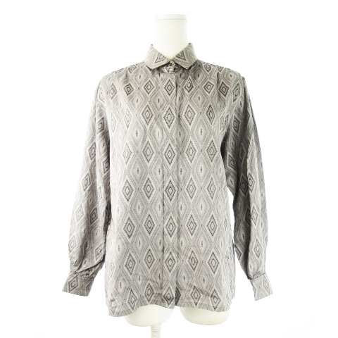 クリスチャンディオール Christian Dior PRET-A-PORTER シャツ レギュラー 長袖 コットン ジャカード ひし形 チェック M グレー