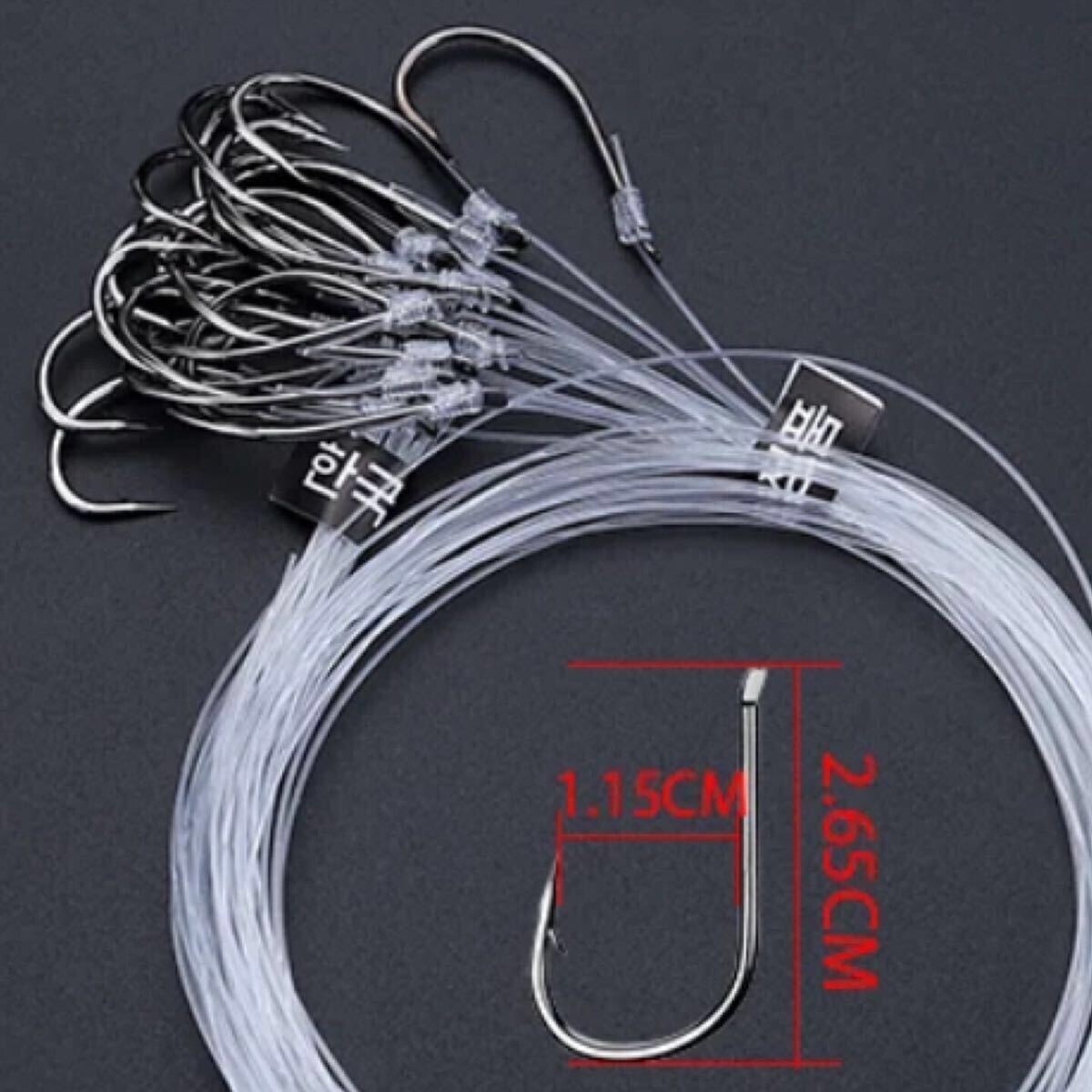 うなぎ穴釣り用です。ハリスが最初から結んであります。20本セット。ハリスの長さは40㎝以上あるので、このみの長さで使って下さい。出品者はサルカンを本線(メインライン)との間に入れて20㎝くらいをおすすめします。送料無料。よろしく御願い致します。