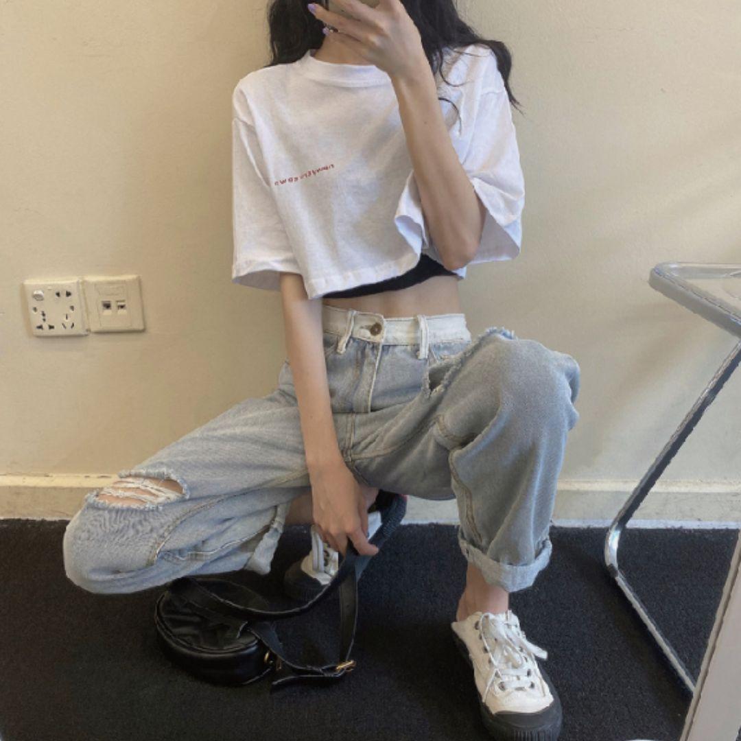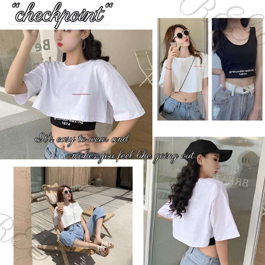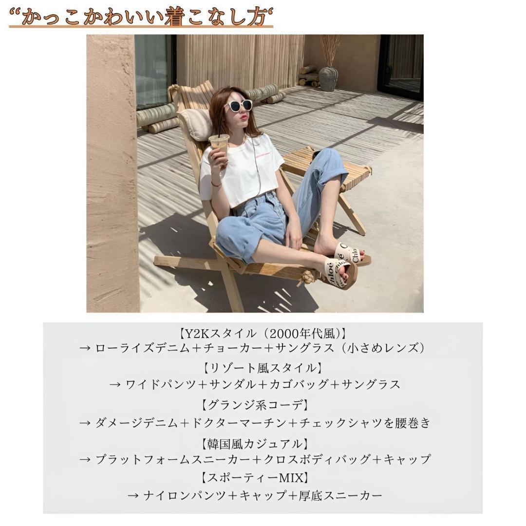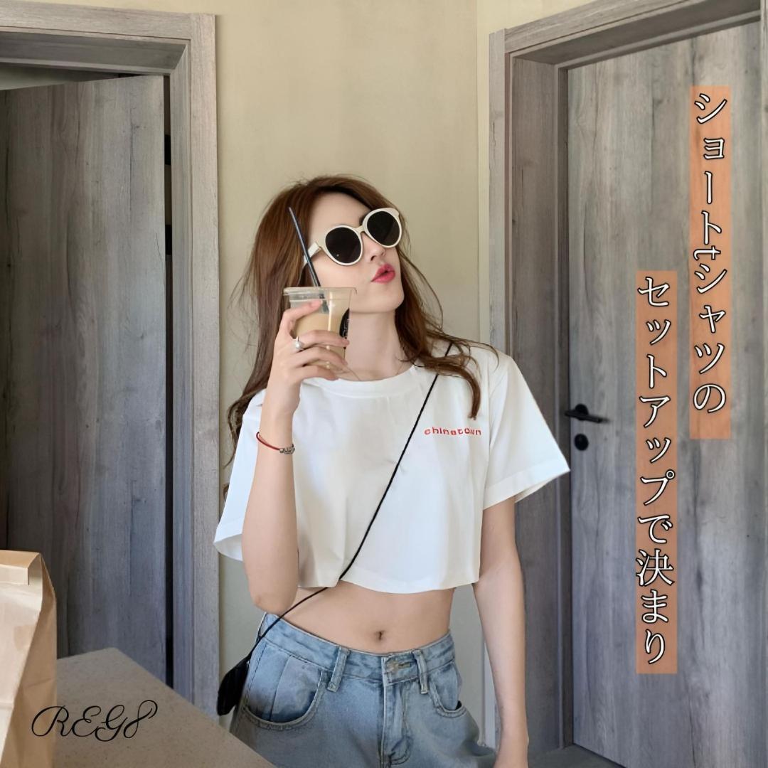 □ トレンドの韓国スタイル 英字ロゴ&ヘソ出しの絶妙な丈感で、オルチャンファッションや韓国カジュアルスタイルにぴったりです。