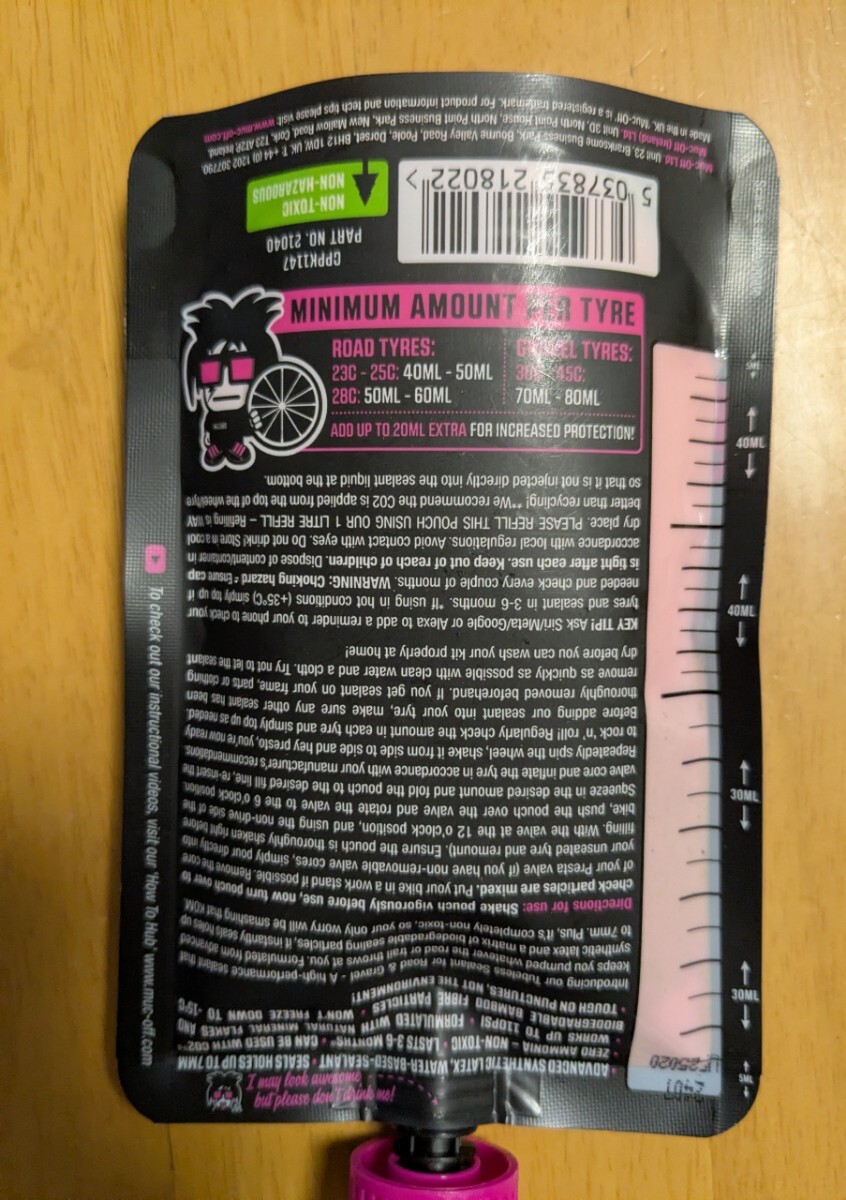 使い方は簡単で、別途準備の注入器でバルブから注入するか、タイヤに直接注入するだけです。Muc-Off の高度なポリマー技術により、シーラントは鎧のようにタイヤの内壁に接着し、パンクが発生した瞬間に修復完了です。