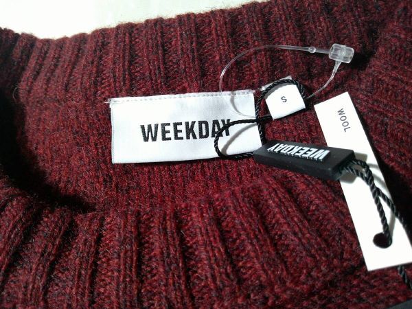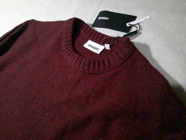 ssy8919 新品 WEEKDAY 長袖 セーター ニット プルオーバー ダークレッド ■ シンプル ■ クルーネック 未使用 Sサイズ